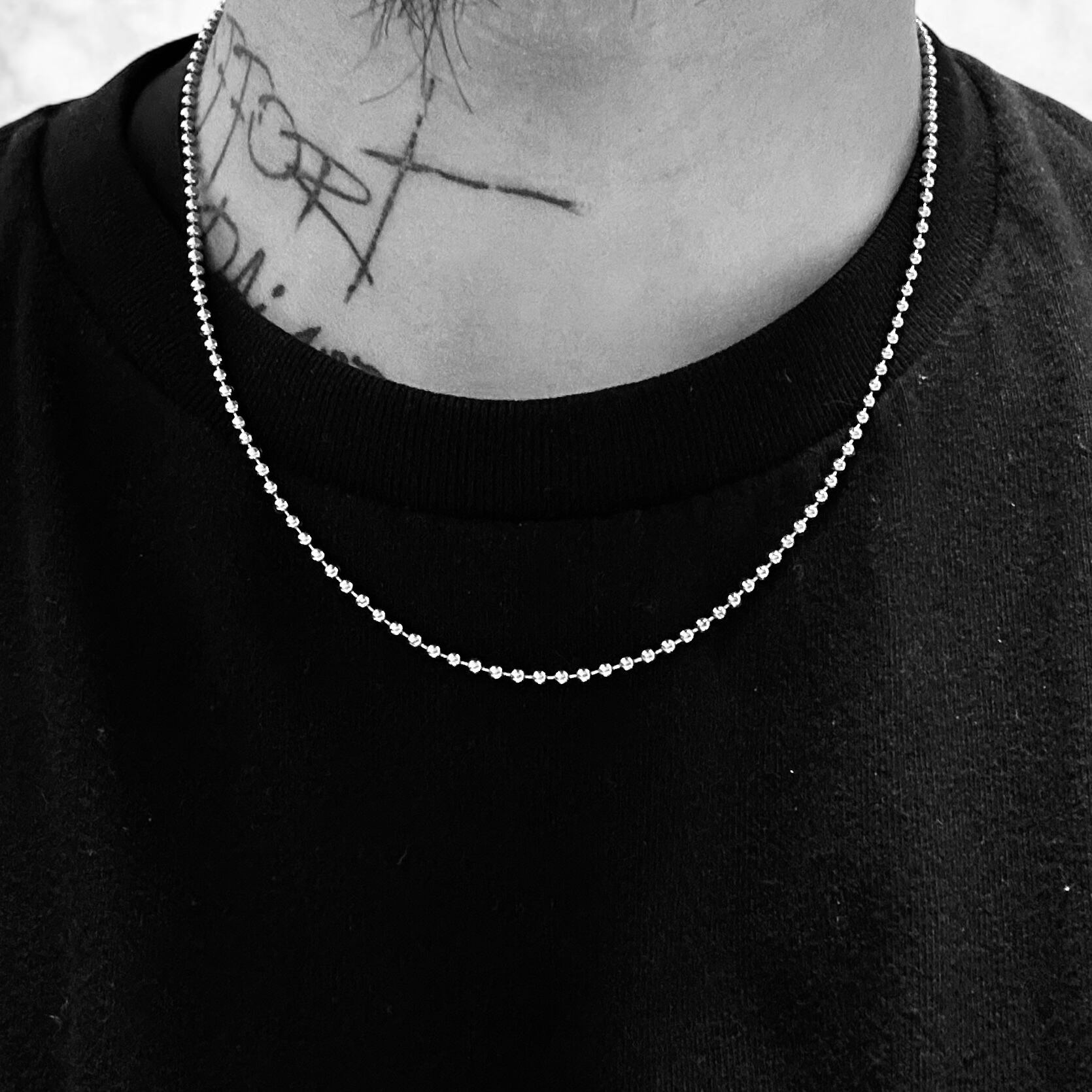 ストリートファッションにぴったりのこのボールチェーンは質感豊かなシルバーが魅力で、どんなスタイルにもマッチします。