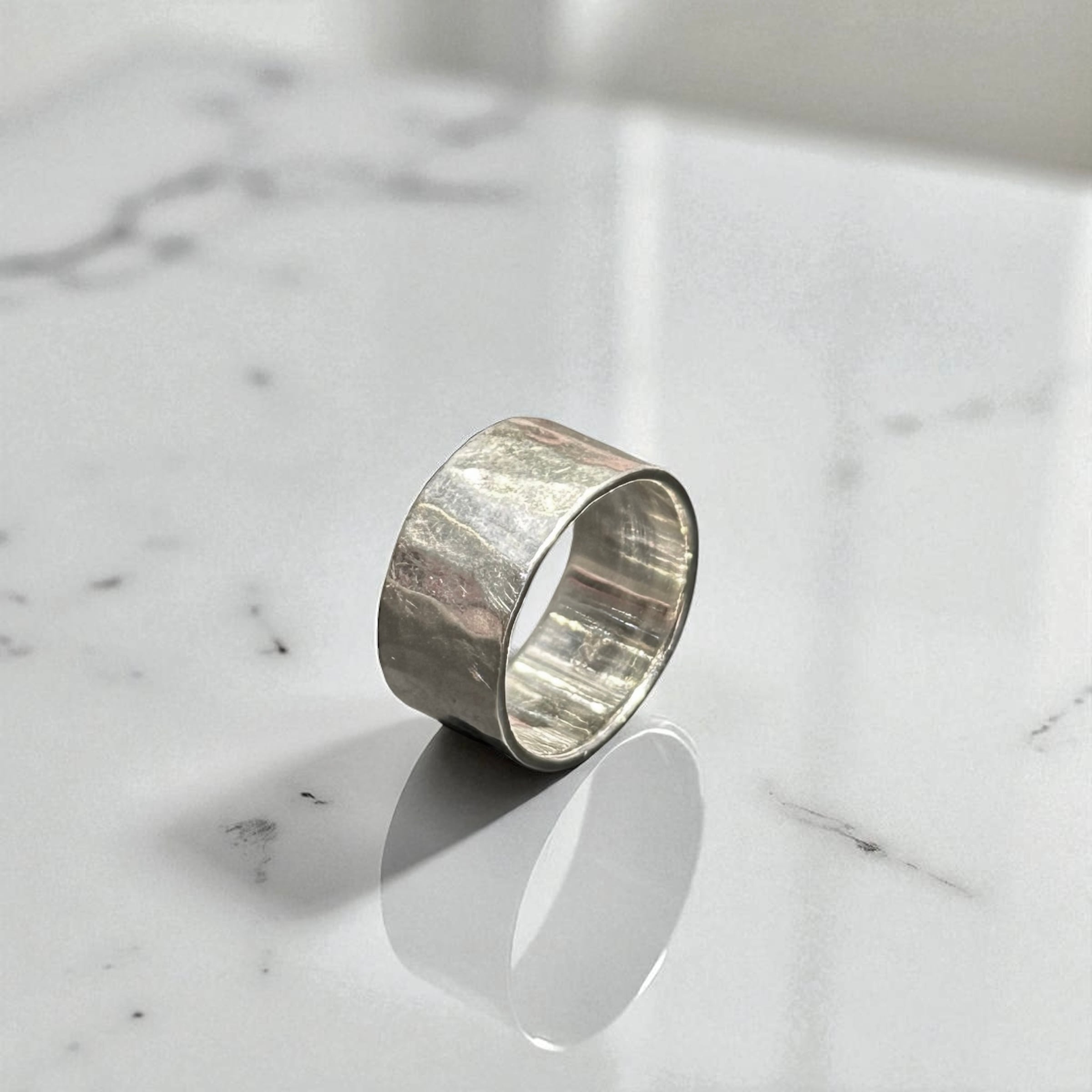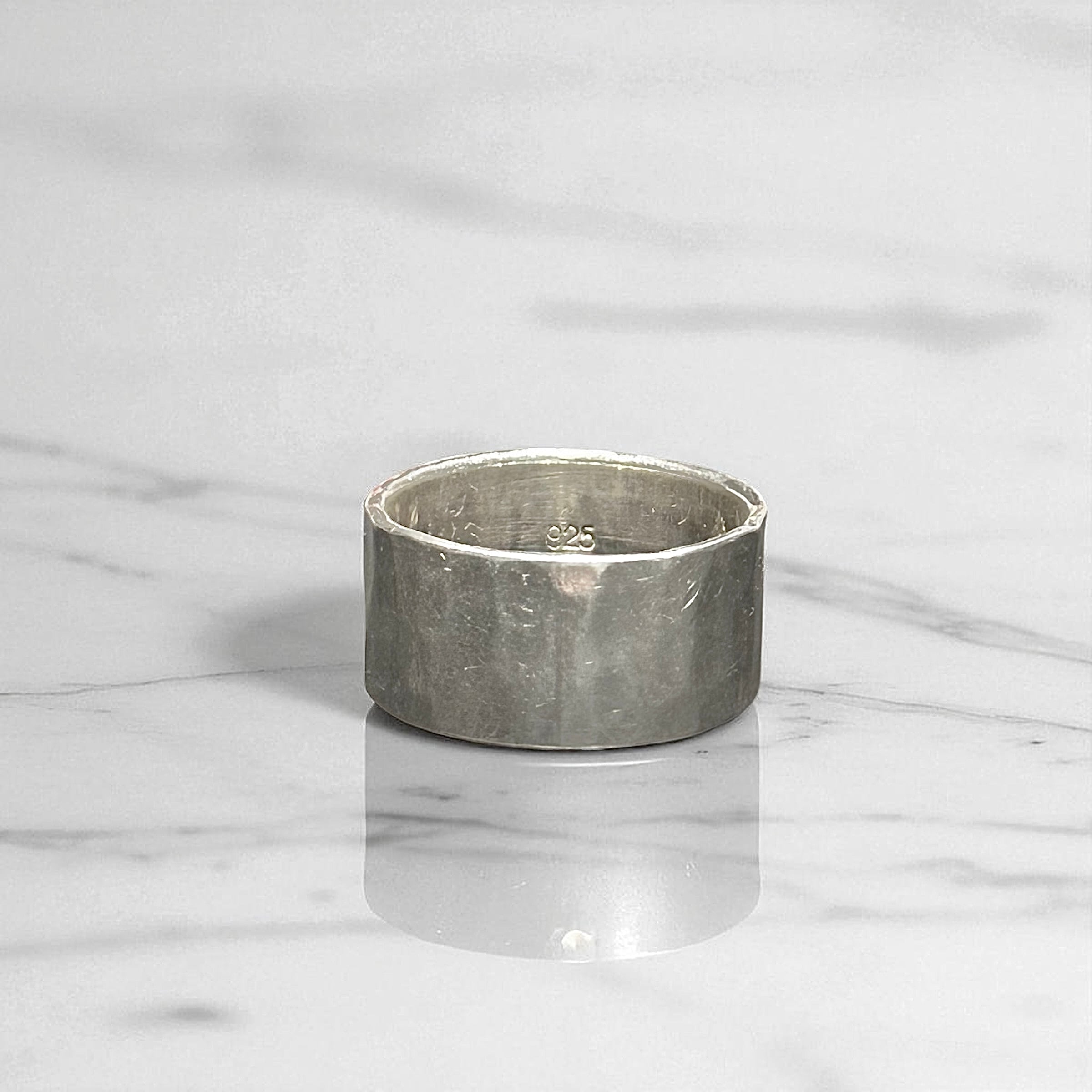 こちらは表面に槌目(ハンマード)加工を施した、シルバー925製ワイドリングです。