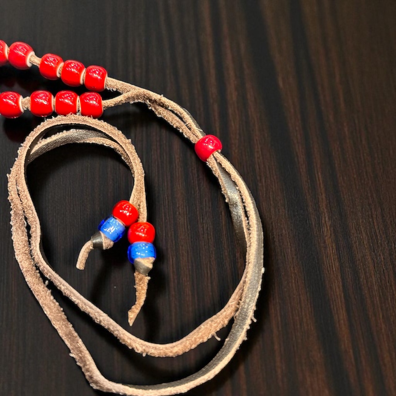 レッドとブルーのビーズがアクセントになっており、1本で存在感抜群!