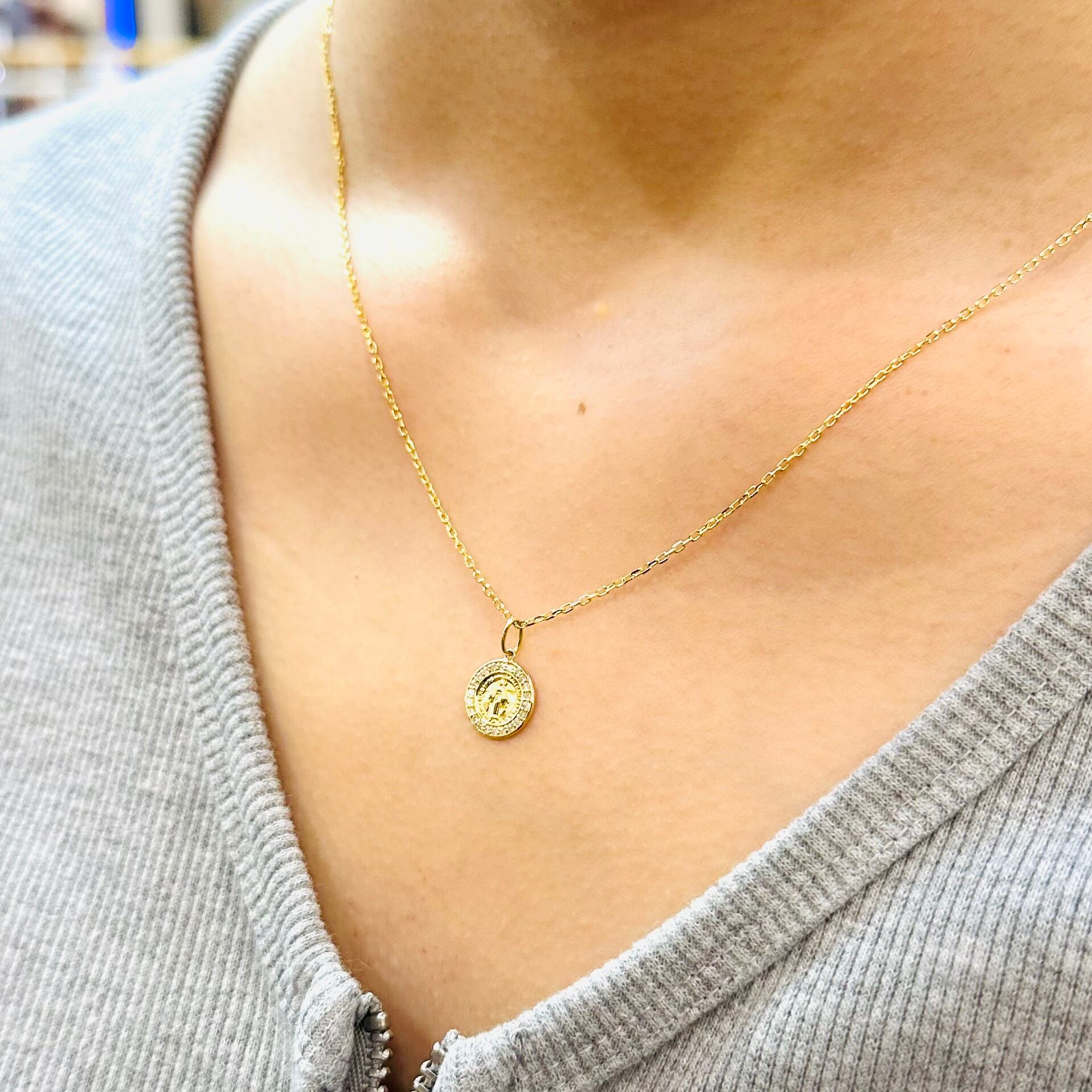 送料無料 k18 18金 マリア コイン ダイヤモンド 聖母マリア コインペンダント ゴールド ゴールドペンダント ゴールドネックレス メダル ゴールドジュエリー ゴールドコイン トレンド ラグジュアリー