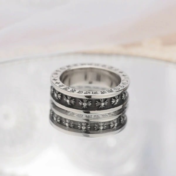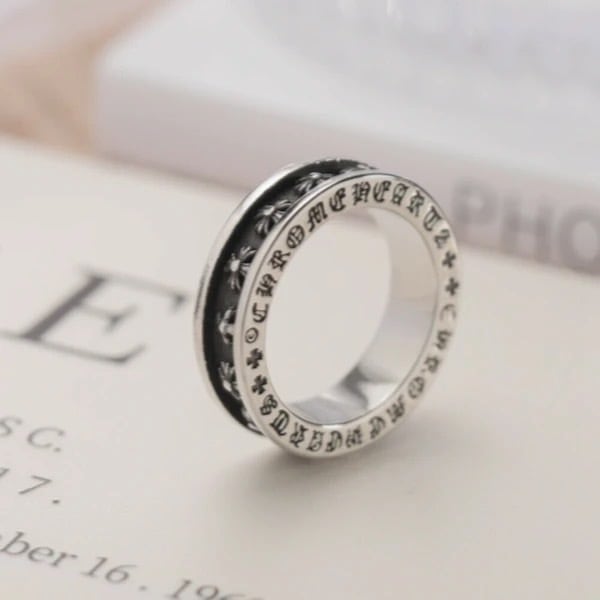 外周にはゴシック調の文字が刻まれ、中央にはクロスモチーフが並んだデザイン。