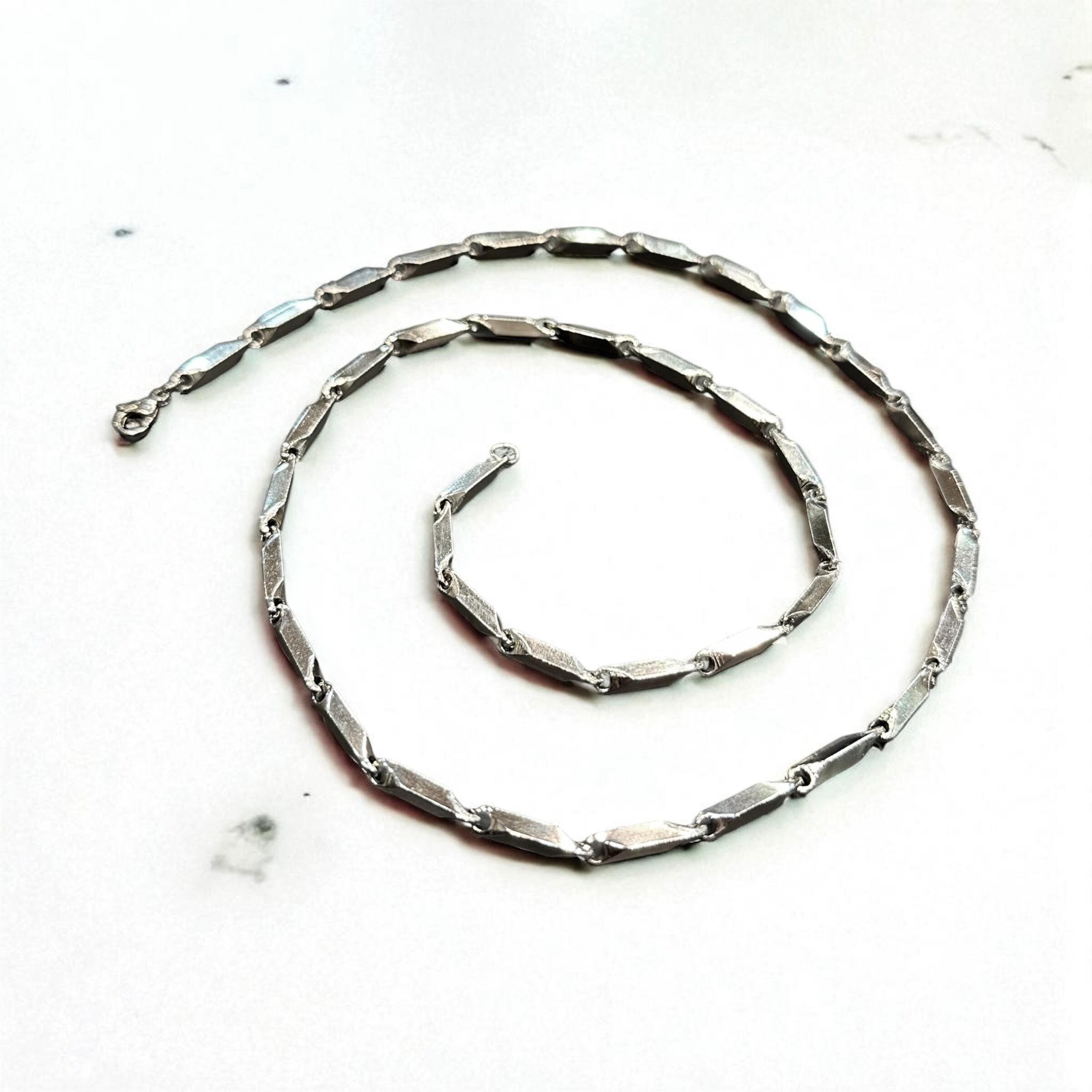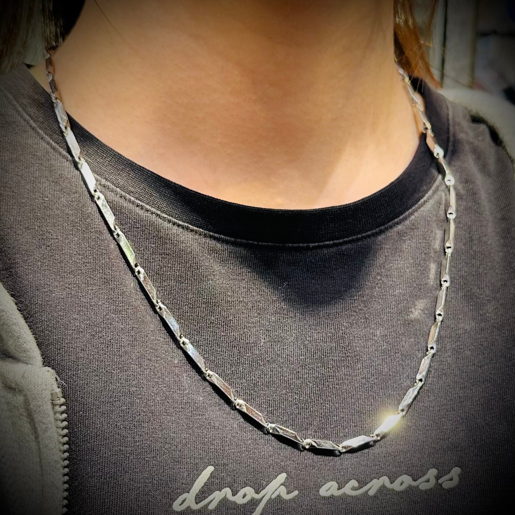 シンプルながら個性的な輝きを放つ、チタン素材のツイストチェーンネックレス。