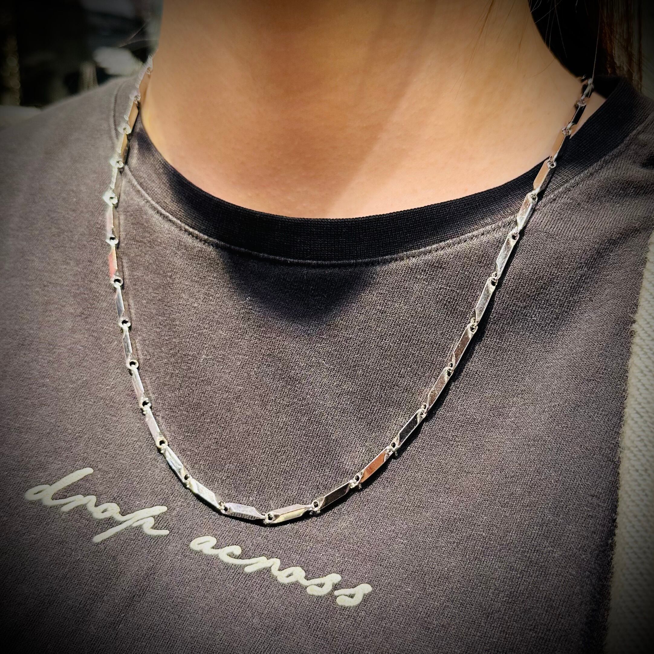 男女問わず、ストリートからカジュアル、モードスタイルまで幅広く合わせやすい万能チェーンです。