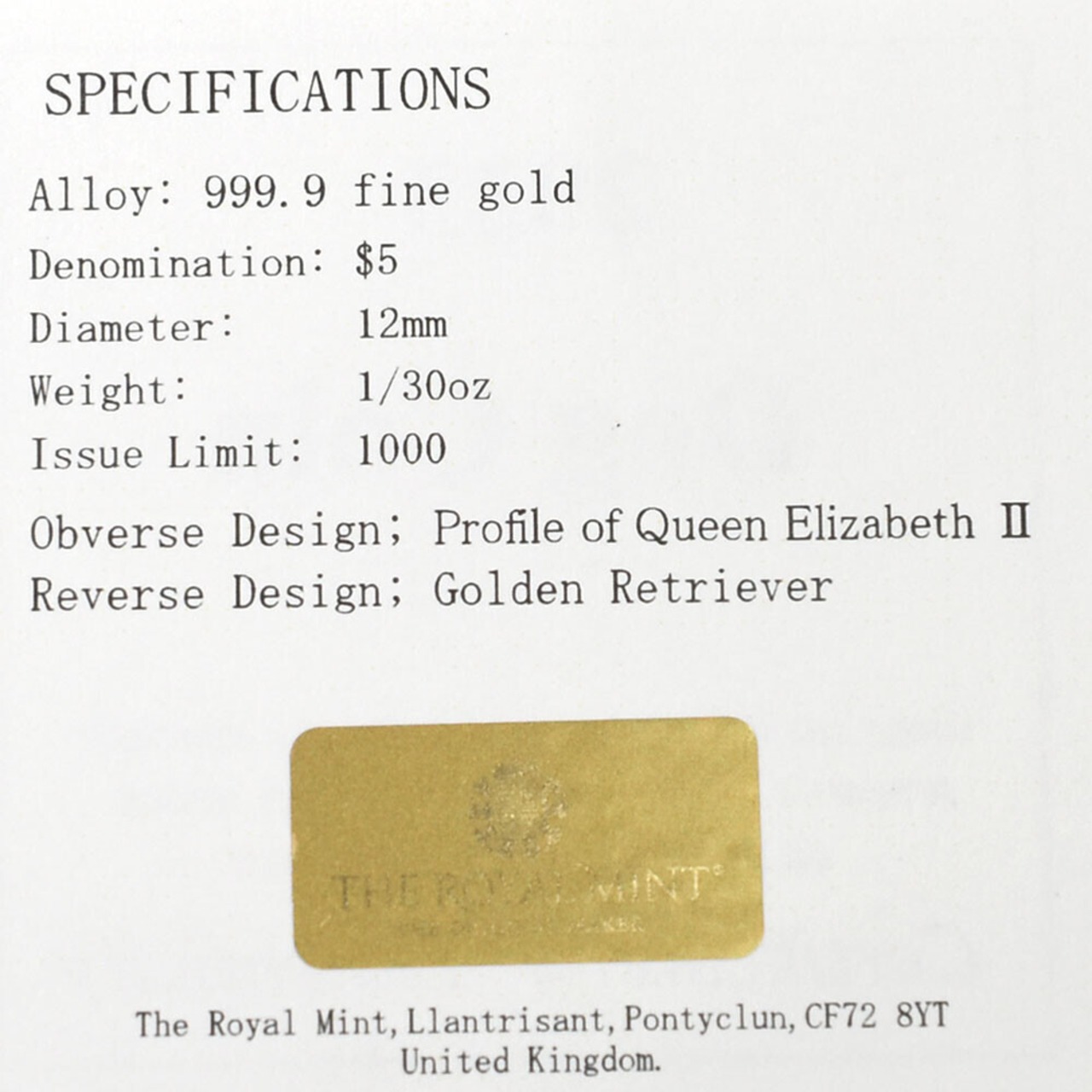 表面には忠実で優雅な「ゴールデンレトリバー」が刻印され、裏面にはエリザベス2世の肖像と発行年「2023」がデザインされています。