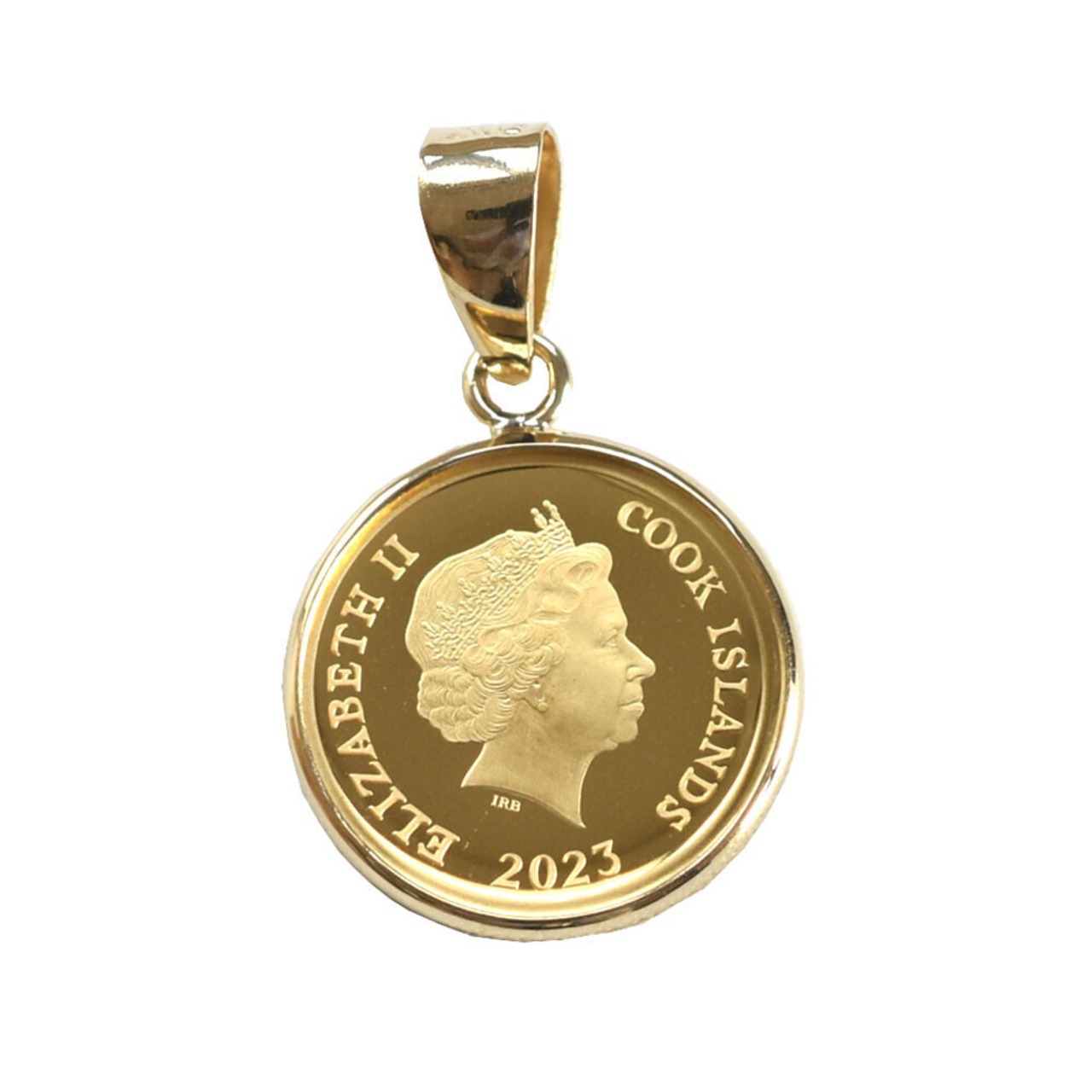 K24, 純金, コインペンダント, ゴールデンレトリバー, 犬モチーフ, クック諸島, 2023年発行, 金貨ジュエリー, 1/30オンス, エリザベス女王, K18枠, ゴールドアクセサリー, プレゼント, 資産ジュエリー, 投資, ペンダントトップ, ネックレス