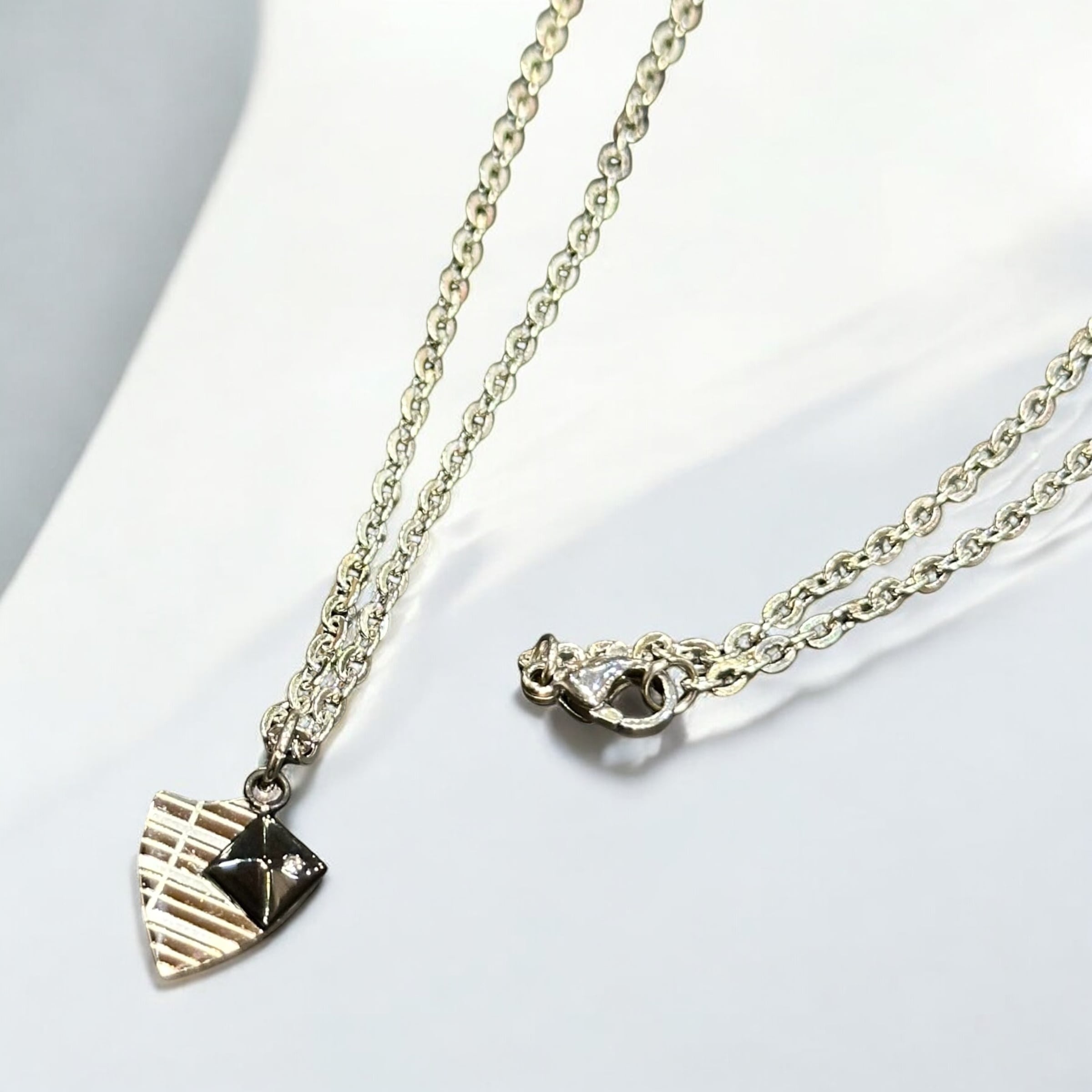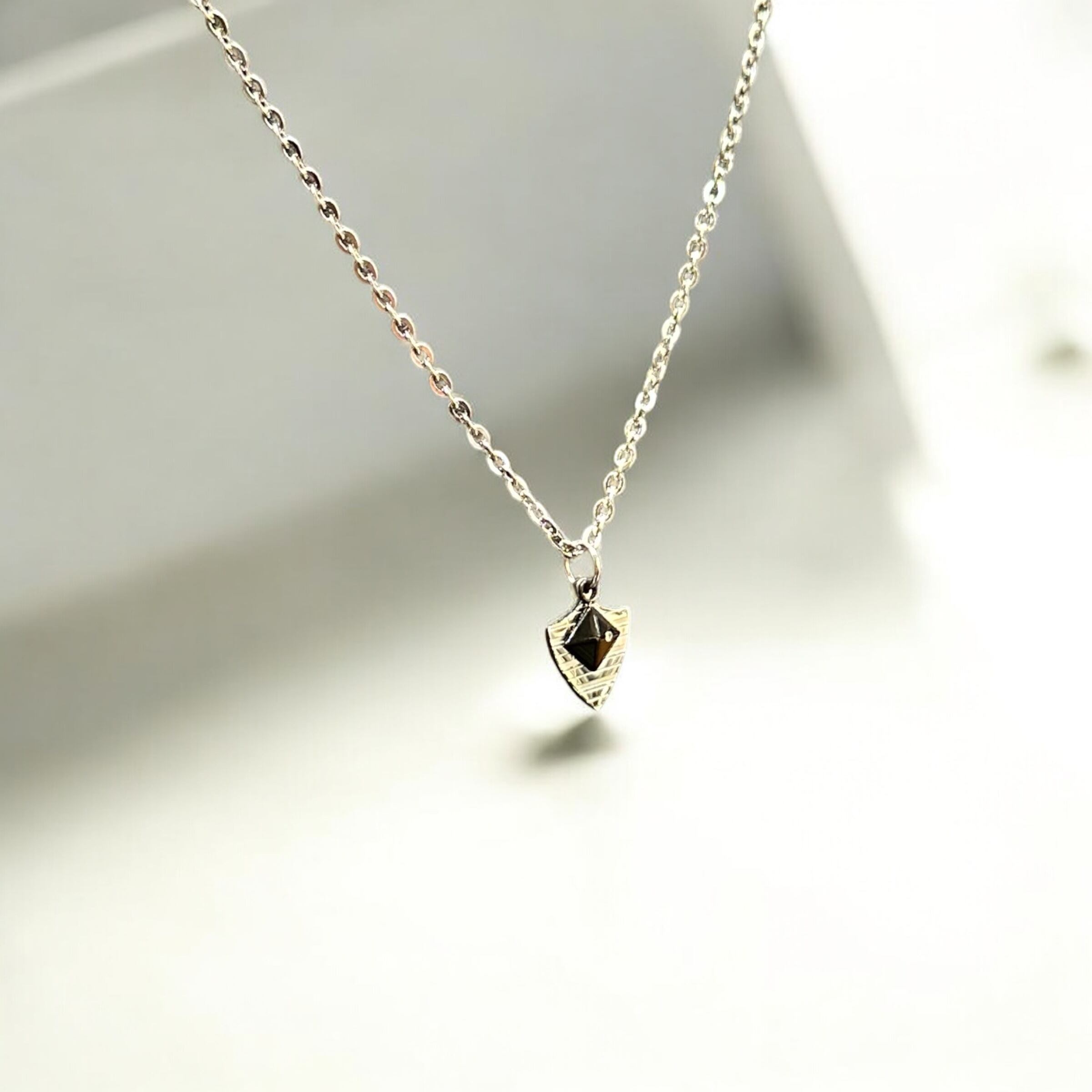 小ぶりながら存在感を放つ、シールド(盾)モチーフ × ブラックスタッズのデザインネックレス!