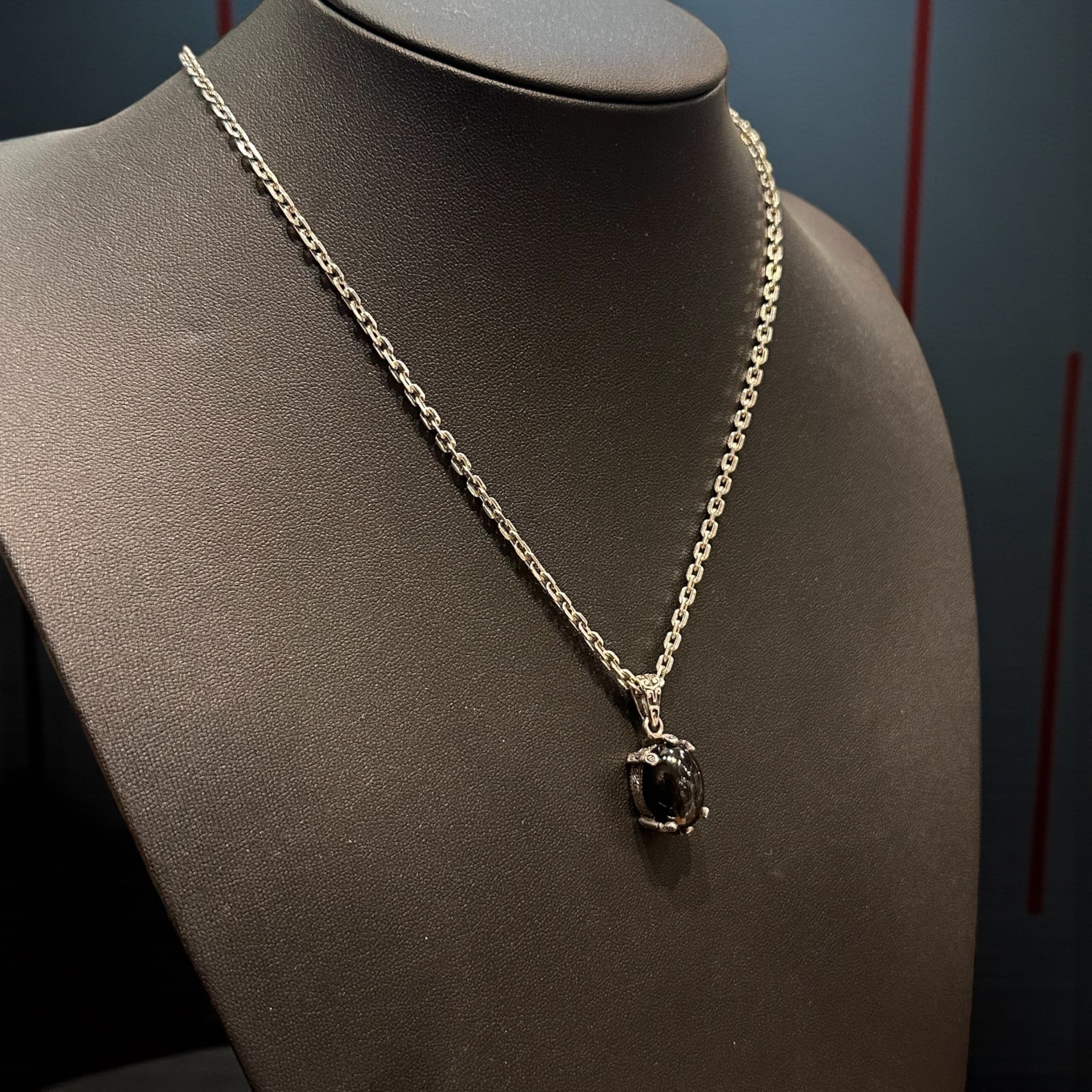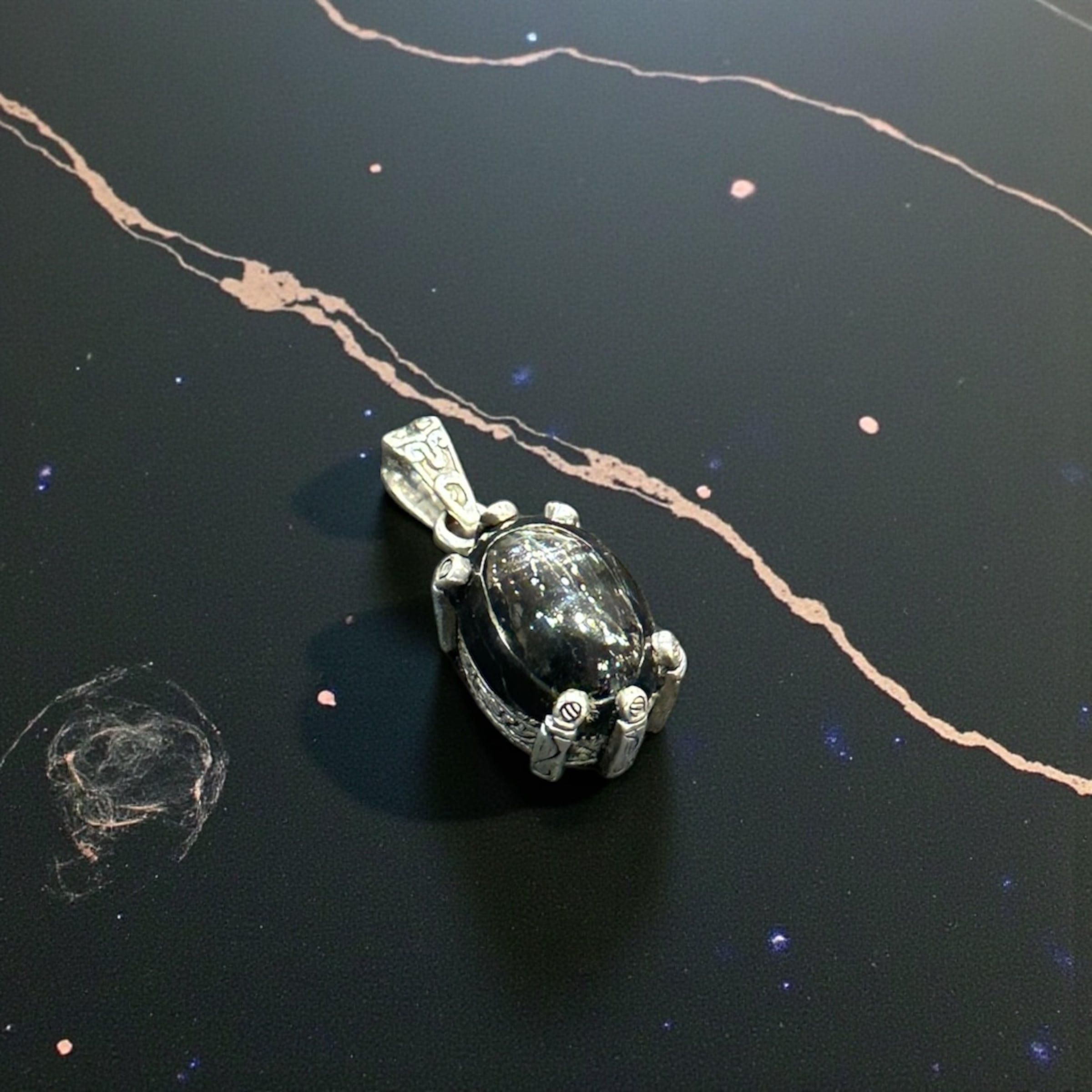 ブラックスターを贅沢に使用した、シルバー925製ペンダントトップです。