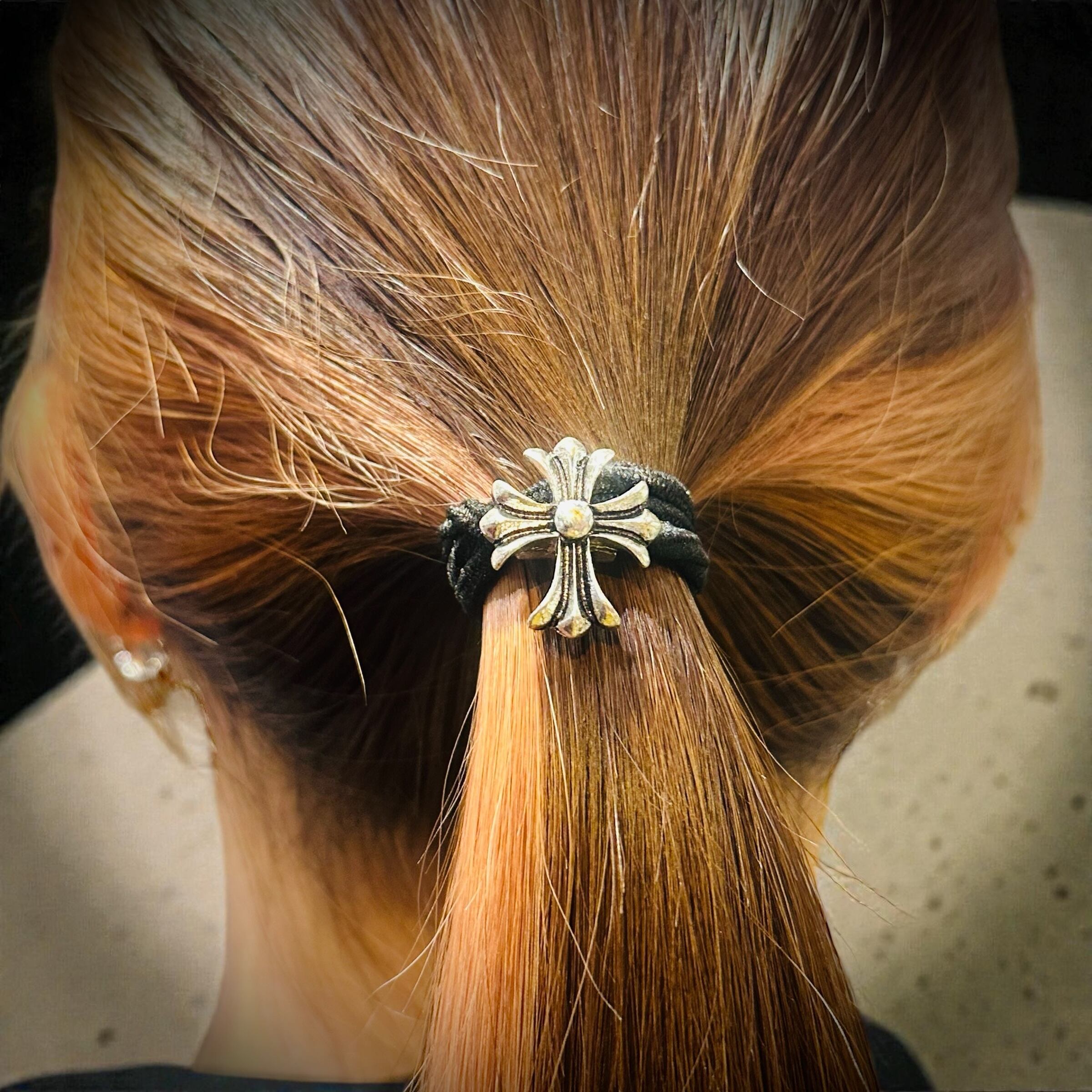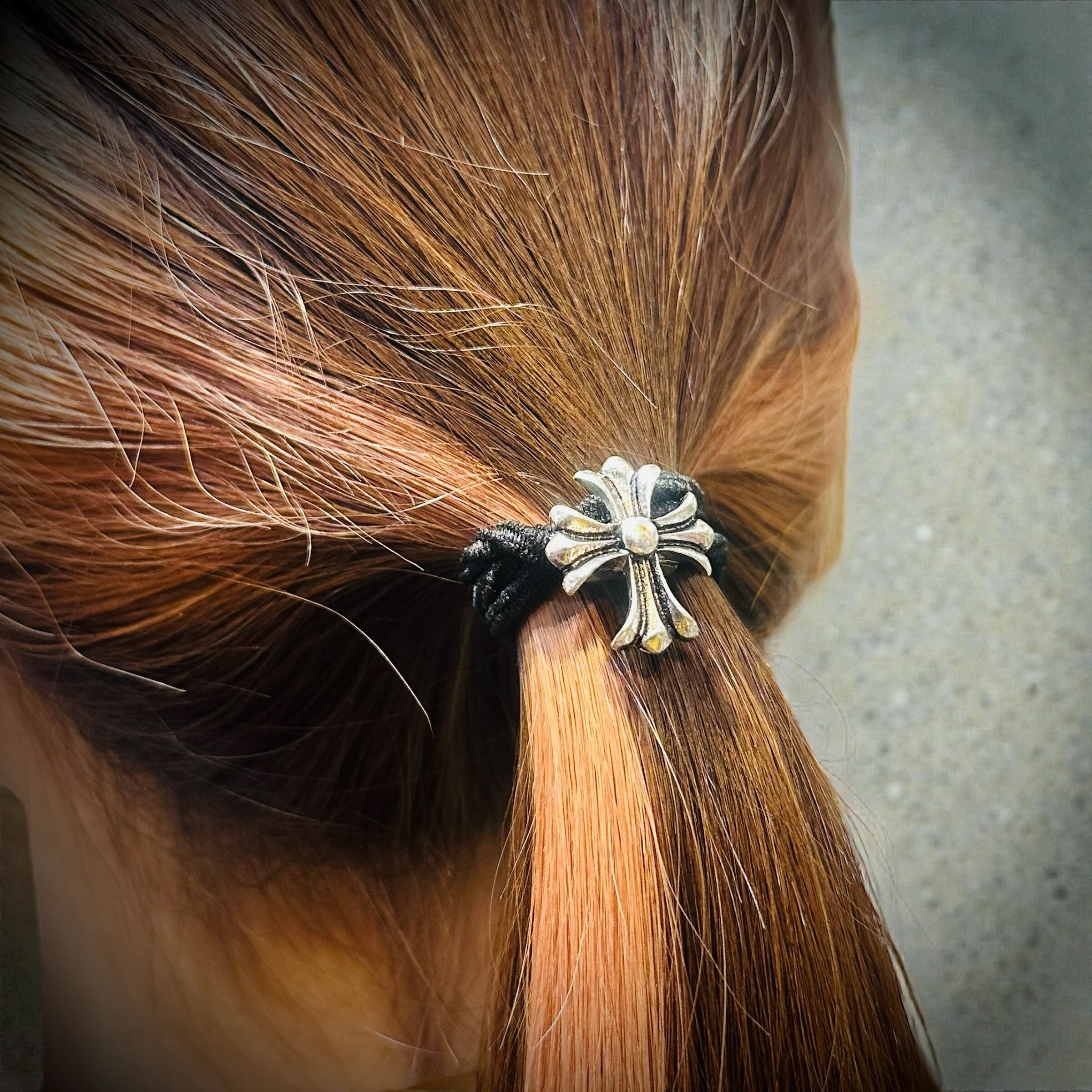 ロック・ゴシック調な雰囲気を感じさせるクロスデザインのヘアゴム!