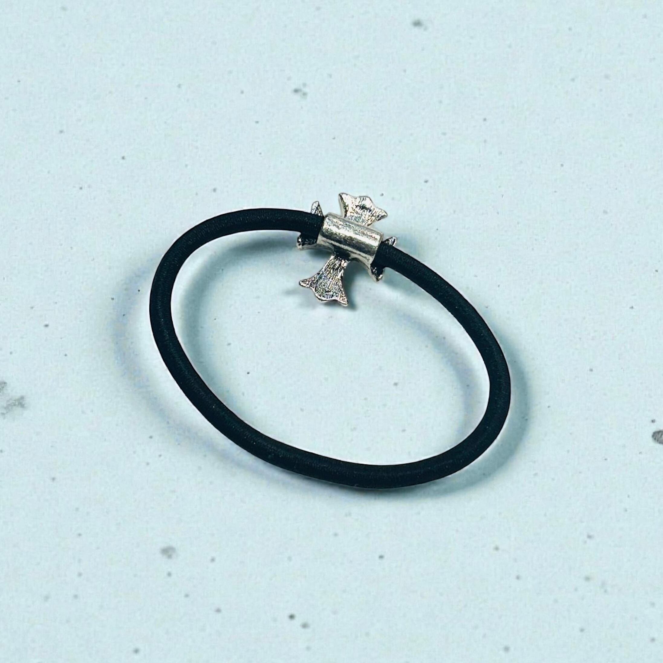 送料無料 ヘアゴム ブレスレット コンチョ デザイン ユニセックス シルバー ロック クロス 十字架 ゴシック ヘアゴムブレス おしゃれ お洒落