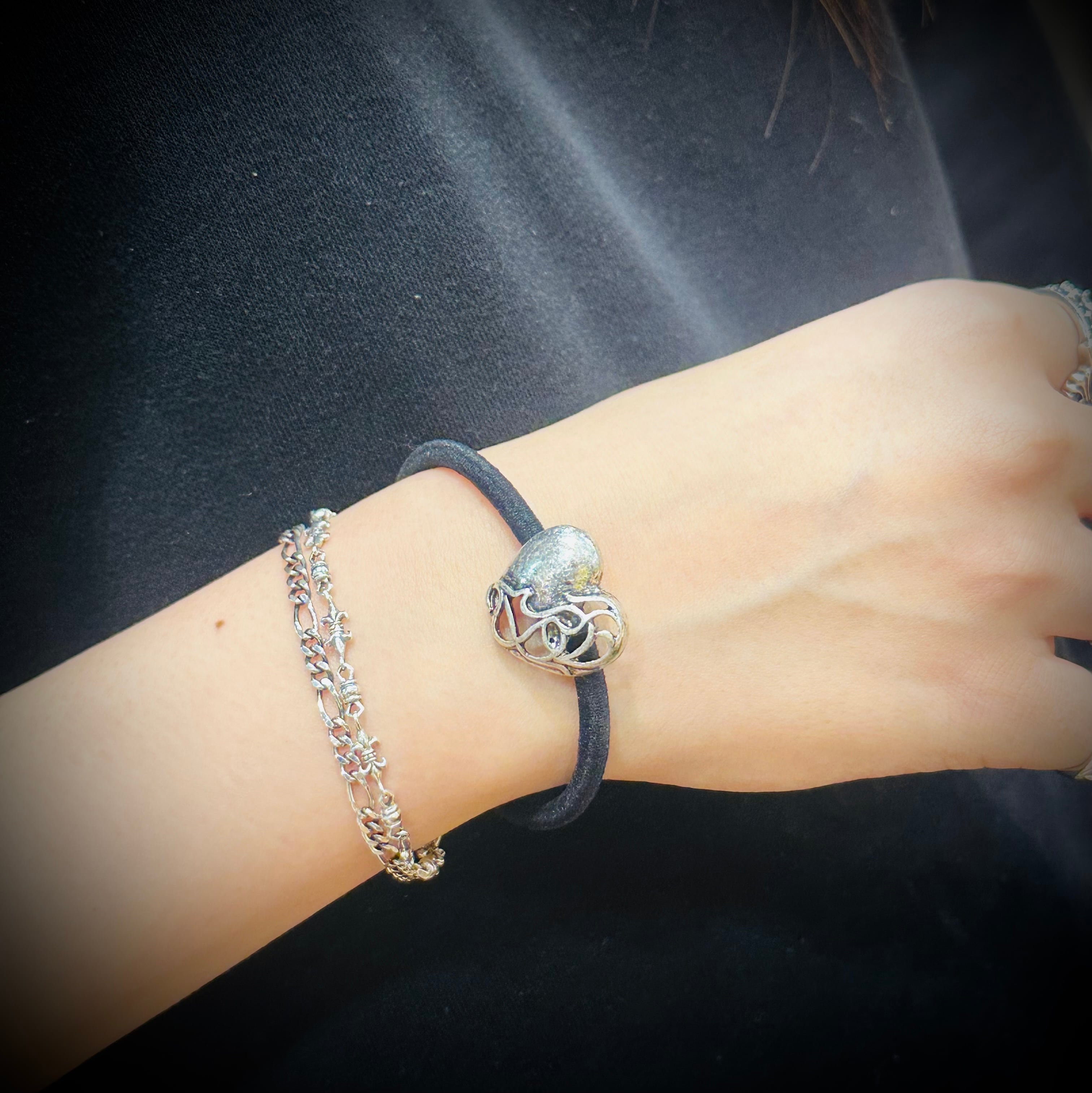 送料無料 ヘアゴム ブレスレット コンチョ デザイン ユニセックス シルバー ロック ハート ゴシック ヘアゴムブレス おしゃれ お洒落
