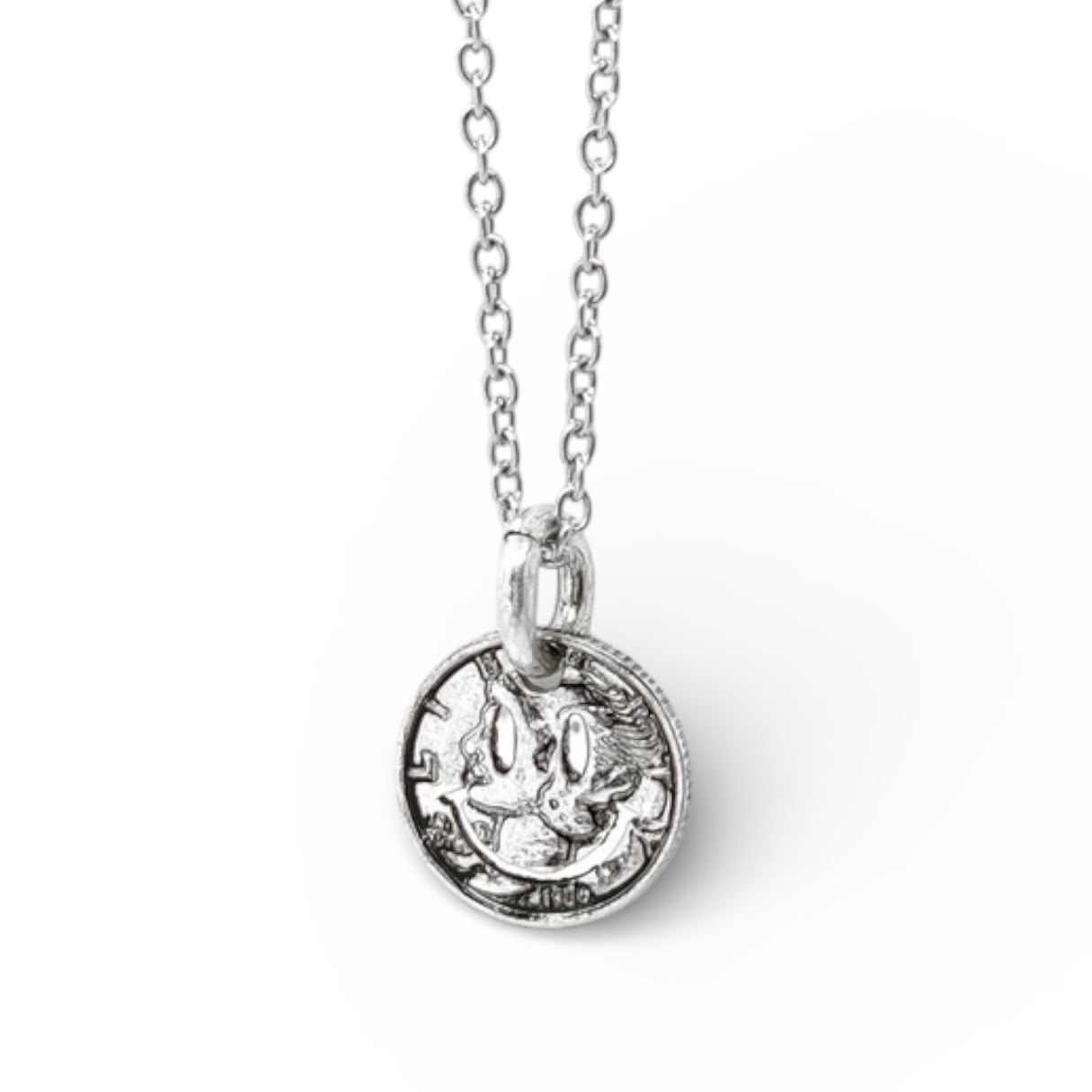 スマイリー,スマイル,ニコちゃん,コインネックレス,メダルネックレス,アンティークシルバー,ヴィンテージ,ビンテージ風,古着,ストリートアクセサリー,ヒップホップ,韓国ファッション,ユニセックス,メンズネックレス,レディースネックレス,ステンレスチェーン,カジュアル,ギフト,ペアアクセサリー,BigPAPA14factory