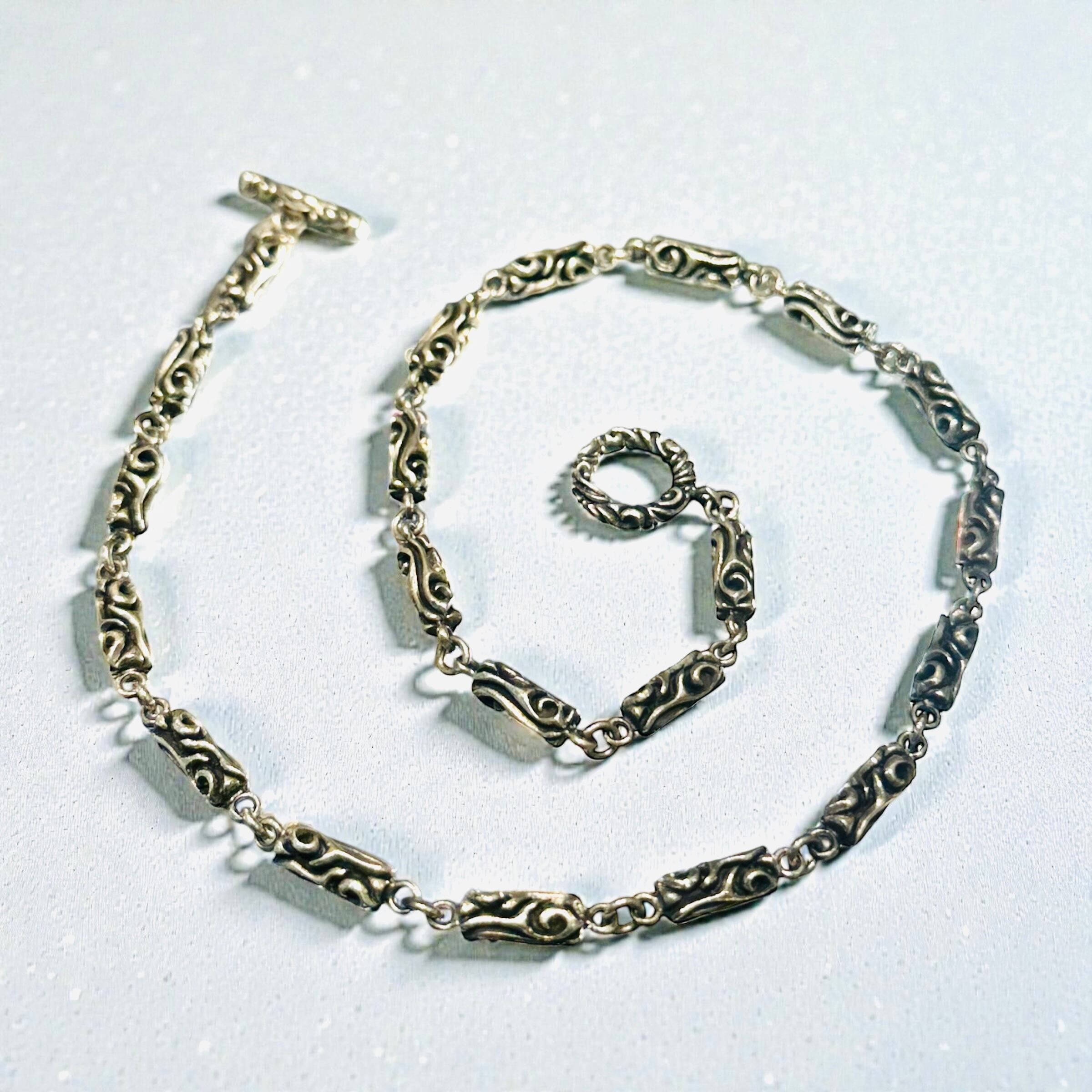 シルバー925,SV925,銀,シルバーネックレス,ネックレスチェーン,チェーンネックレス,メンズネックレス,メンズアクセサリー,ユニセックス,バレルチェーン,彫刻チェーン,彫り,唐草,アラベスク,アンティーク,ヴィンテージ,燻し,マンテル,トグル,ストリートアクセサリー,大人ストリート,ヒップホップジュエリー,シンプルコーデ