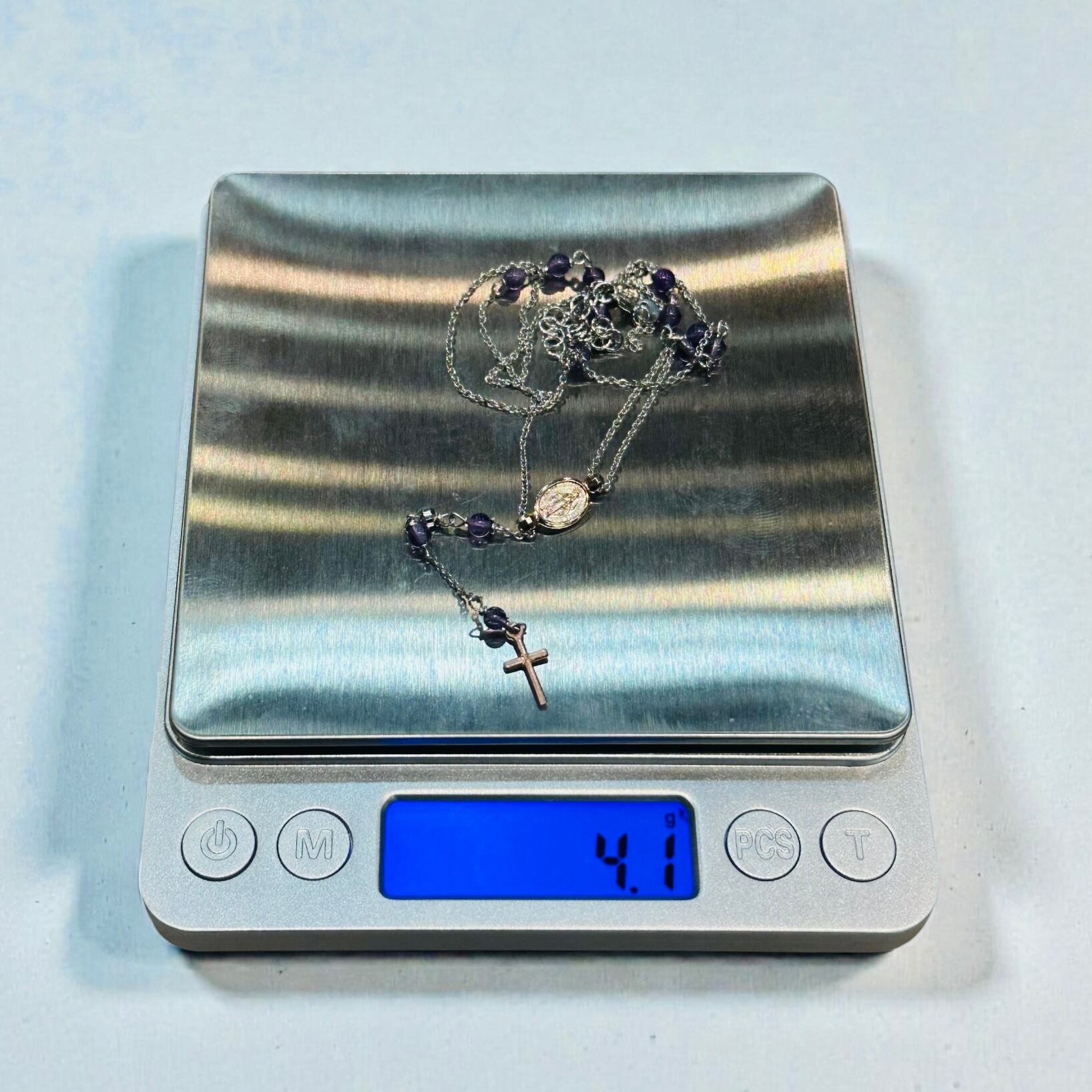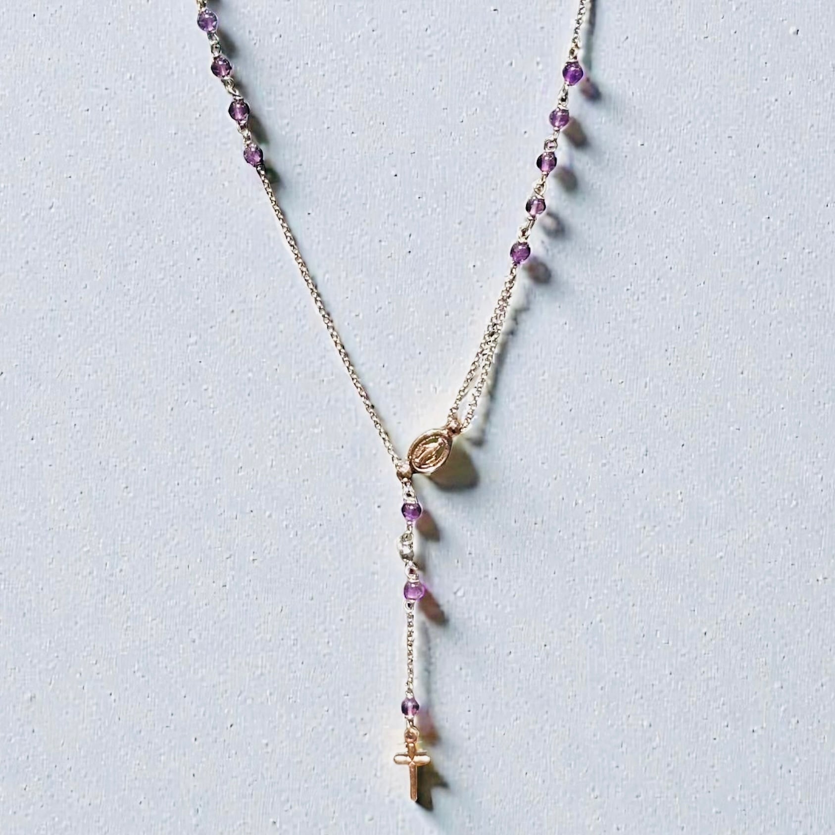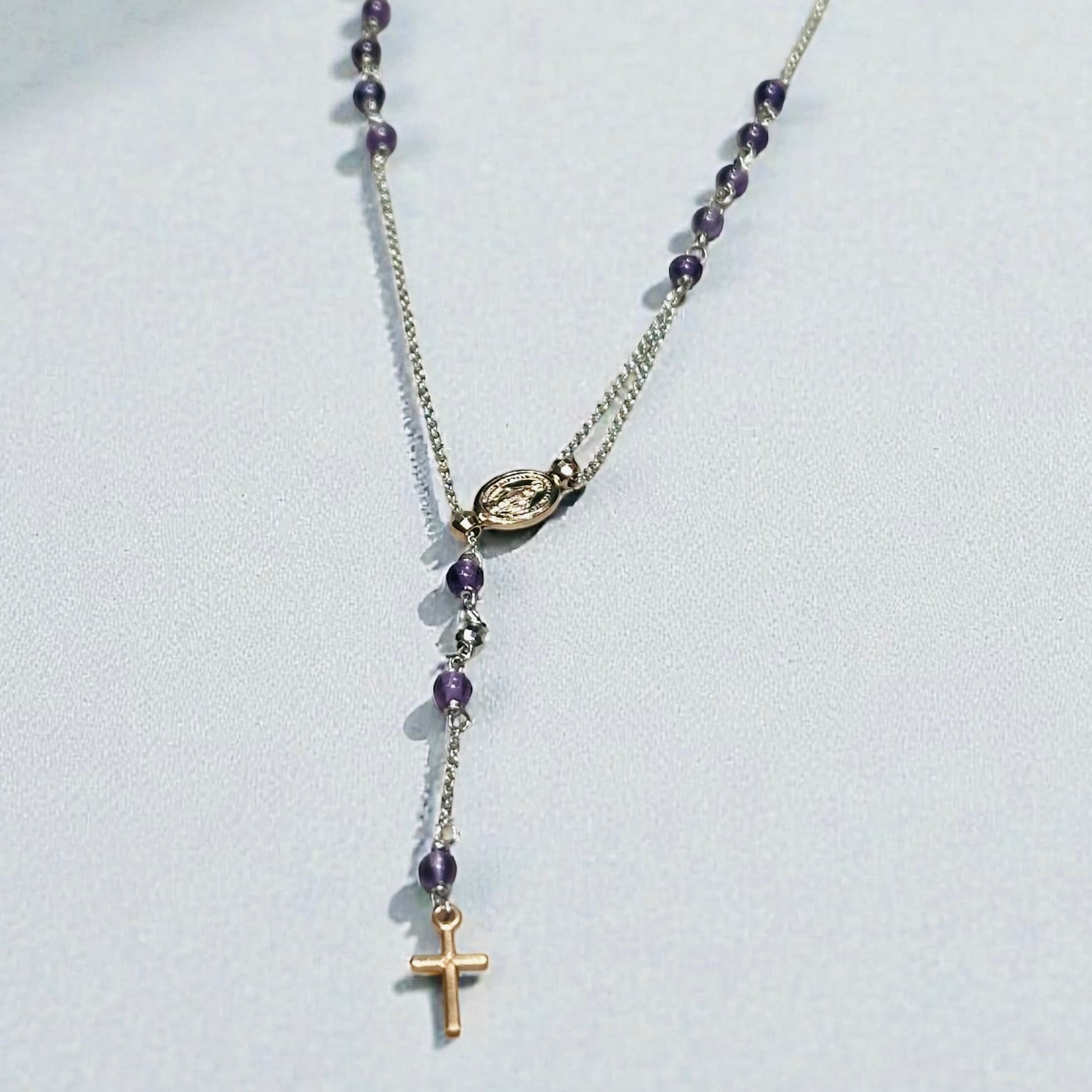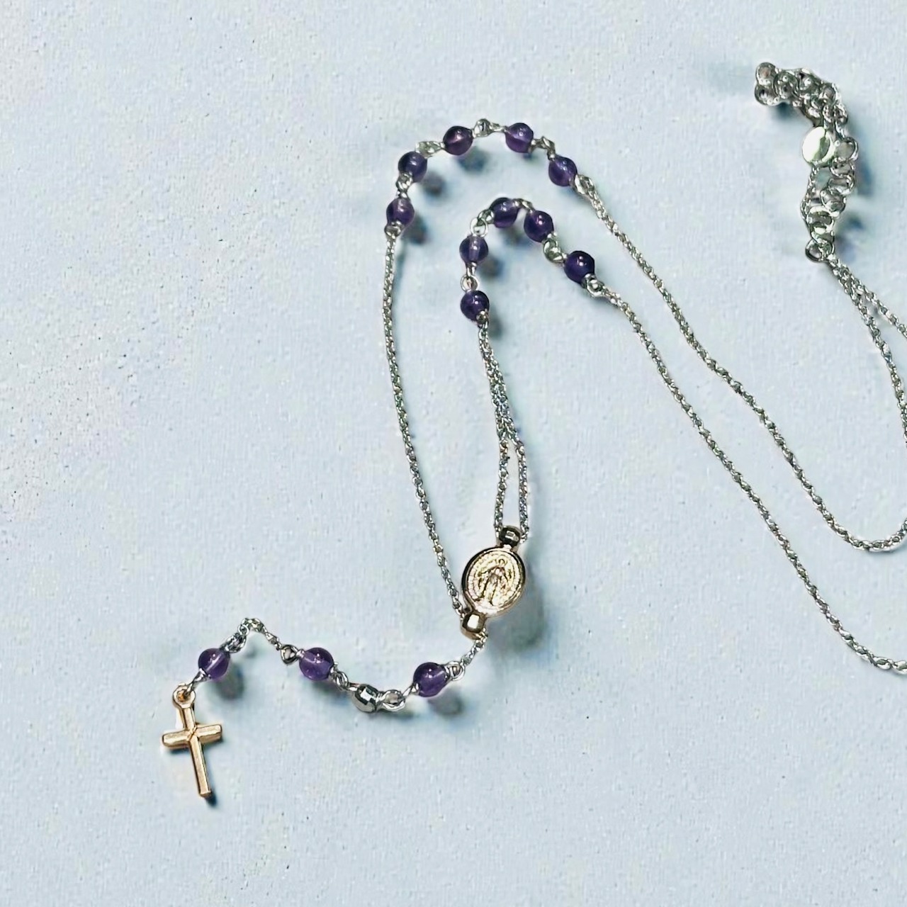 シルバー925と天然石アメジストを組み合わせた、上品なロザリオネックレス。