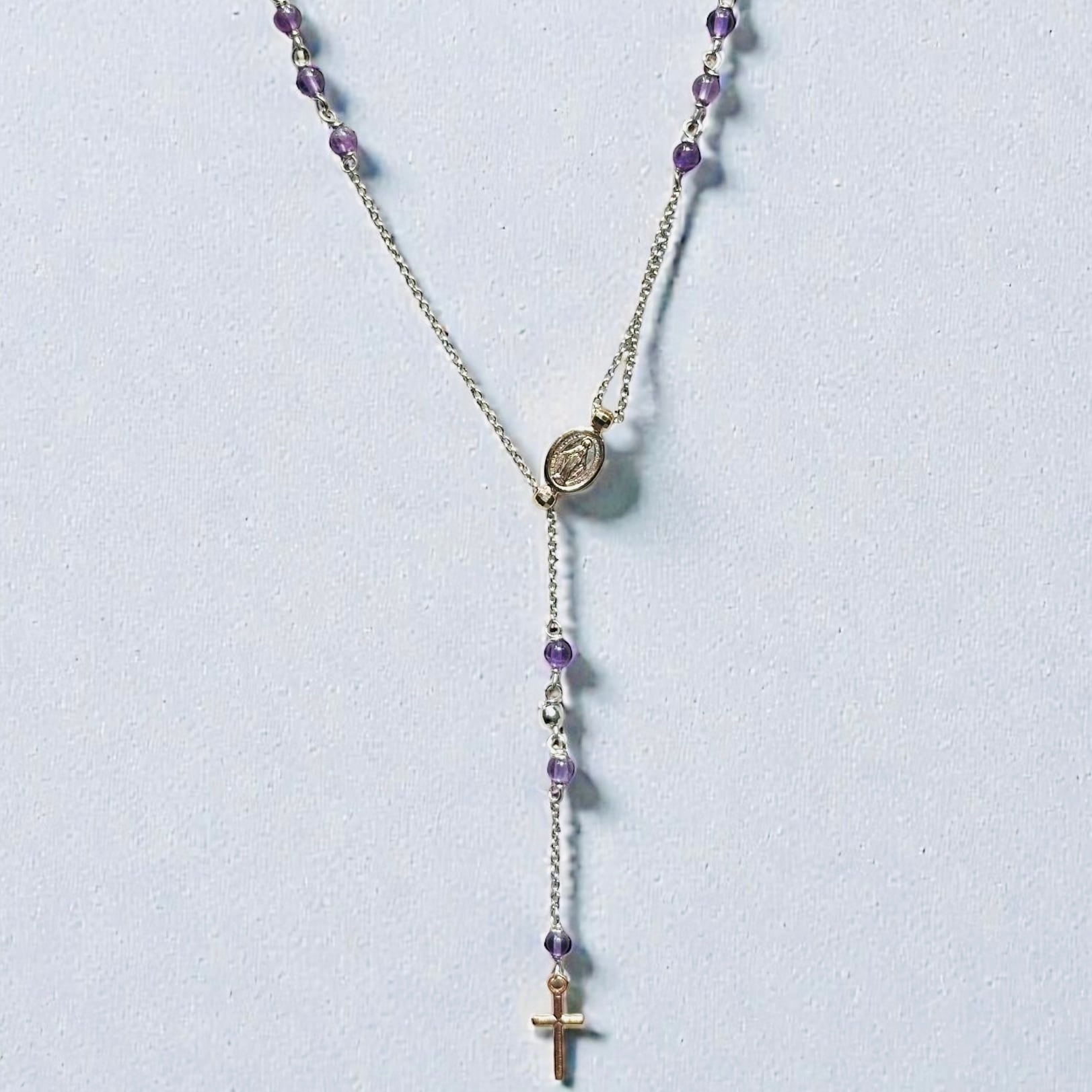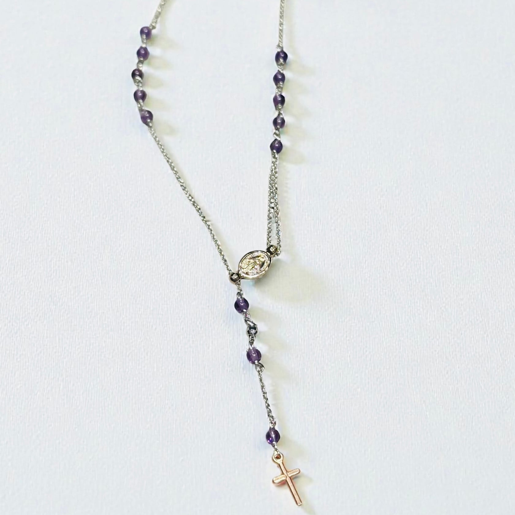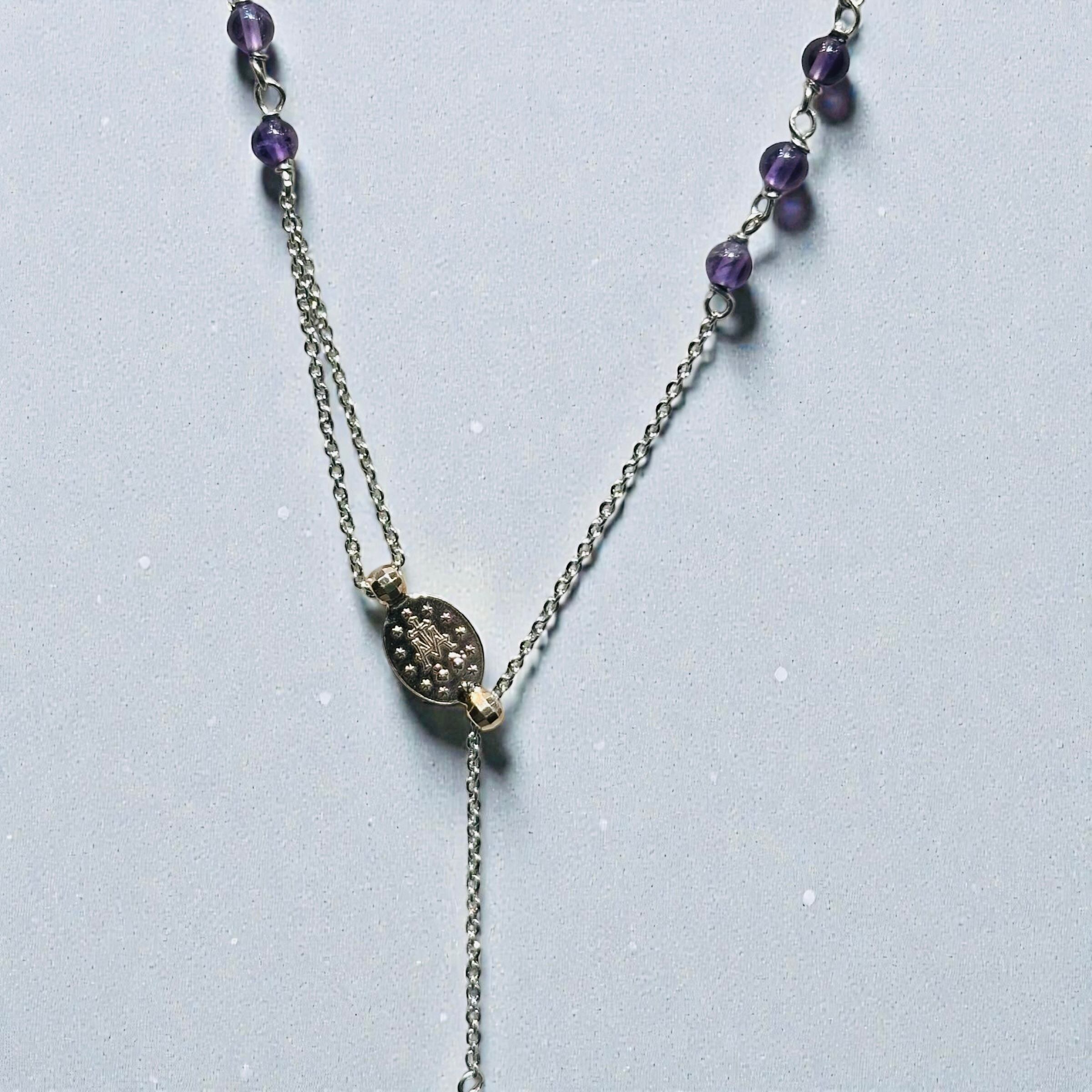 ロザリオ,ロザリオネックレス,Y字ネックレス,ラリエット,シルバー925,SILVER925,アメジスト,紫水晶,天然石ネックレス,パワーストーン,マリアメダイ,マリアネックレス,クロスネックレス,十字架,シルバーネックレス,上品アクセサリー,ユニセックス,メンズアクセサリー,レディースアクセサリー,大人ストリート,モード系,シンプルコーデ,重ね付け,プレゼント,ギフト
