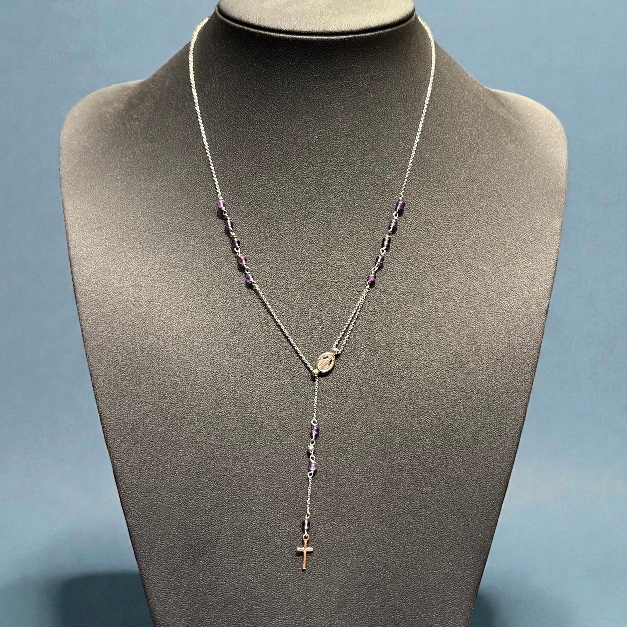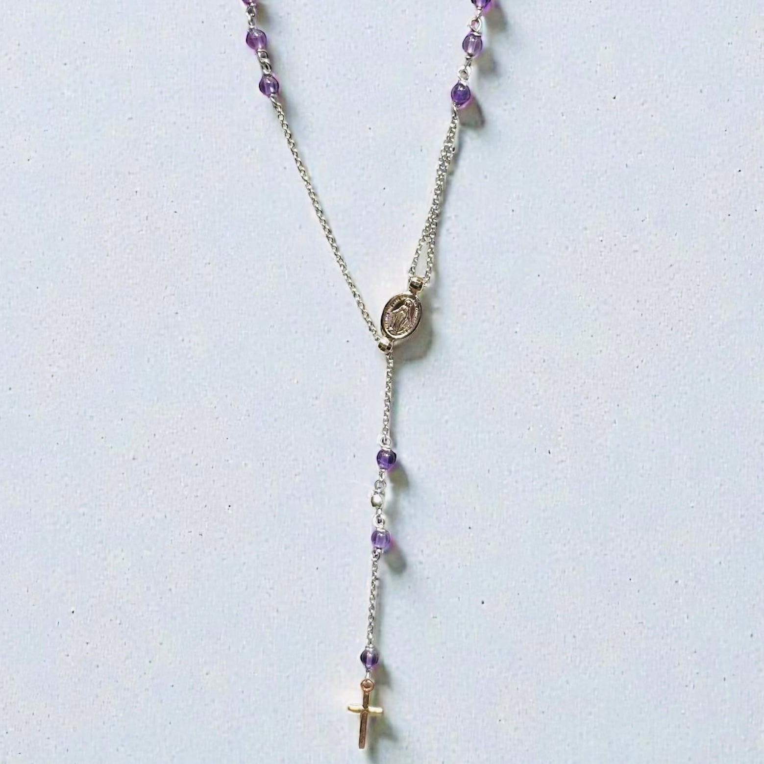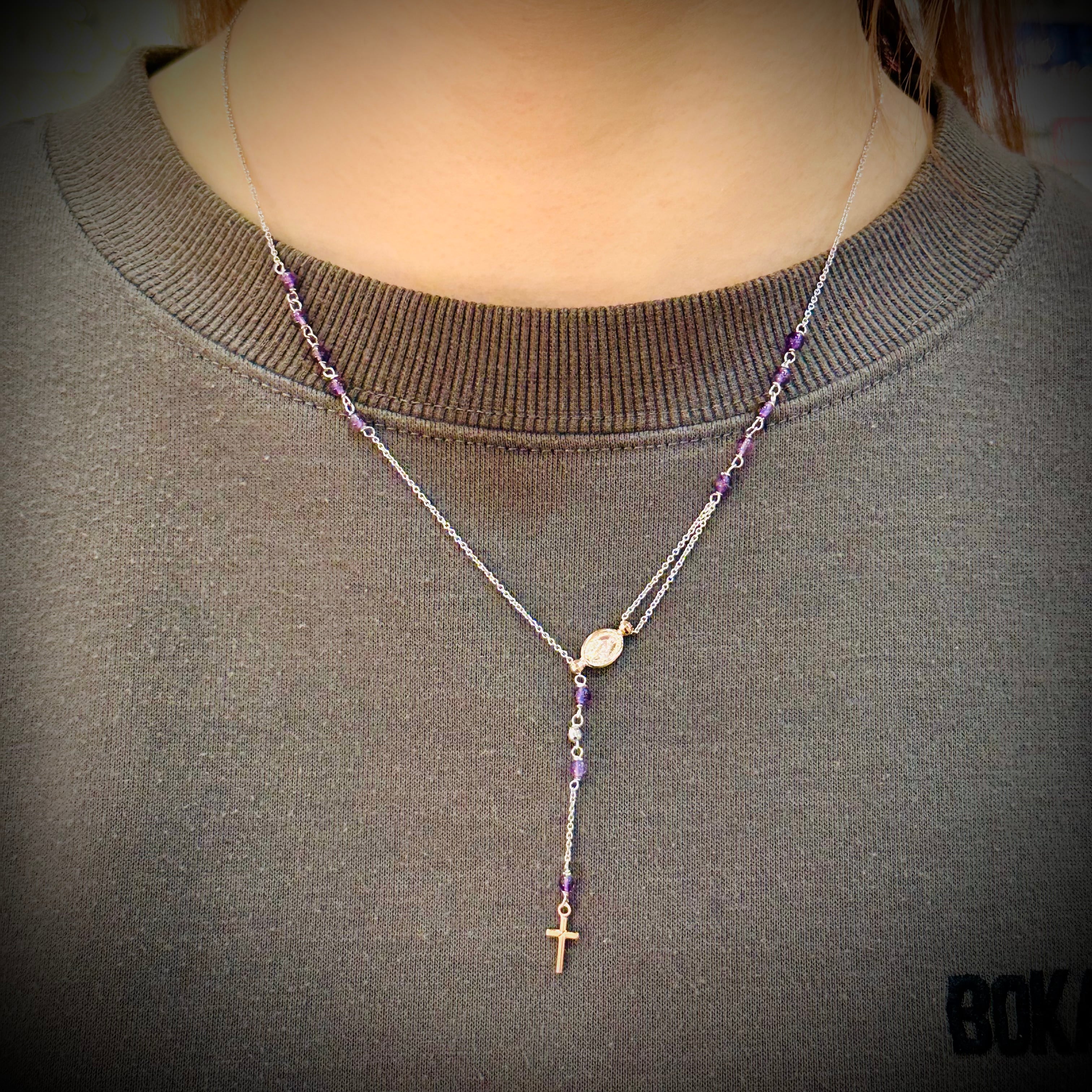 ロザリオ,ロザリオネックレス,Y字ネックレス,ラリエット,シルバー925,SILVER925,アメジスト,紫水晶,天然石ネックレス,パワーストーン,マリアメダイ,マリアネックレス,クロスネックレス,十字架,シルバーネックレス,上品アクセサリー,ユニセックス,メンズアクセサリー,レディースアクセサリー,大人ストリート,モード系,シンプルコーデ,重ね付け,プレゼント,ギフト