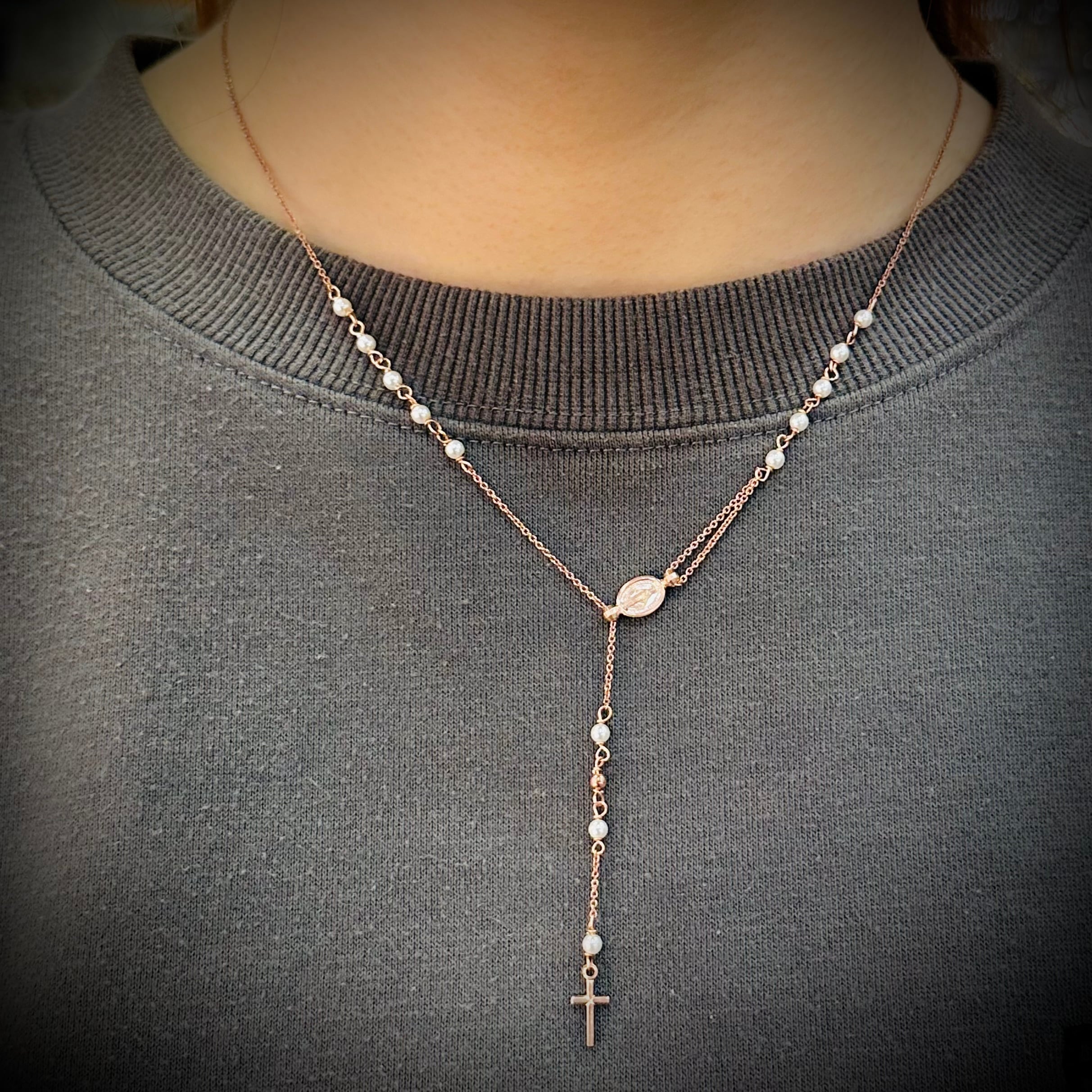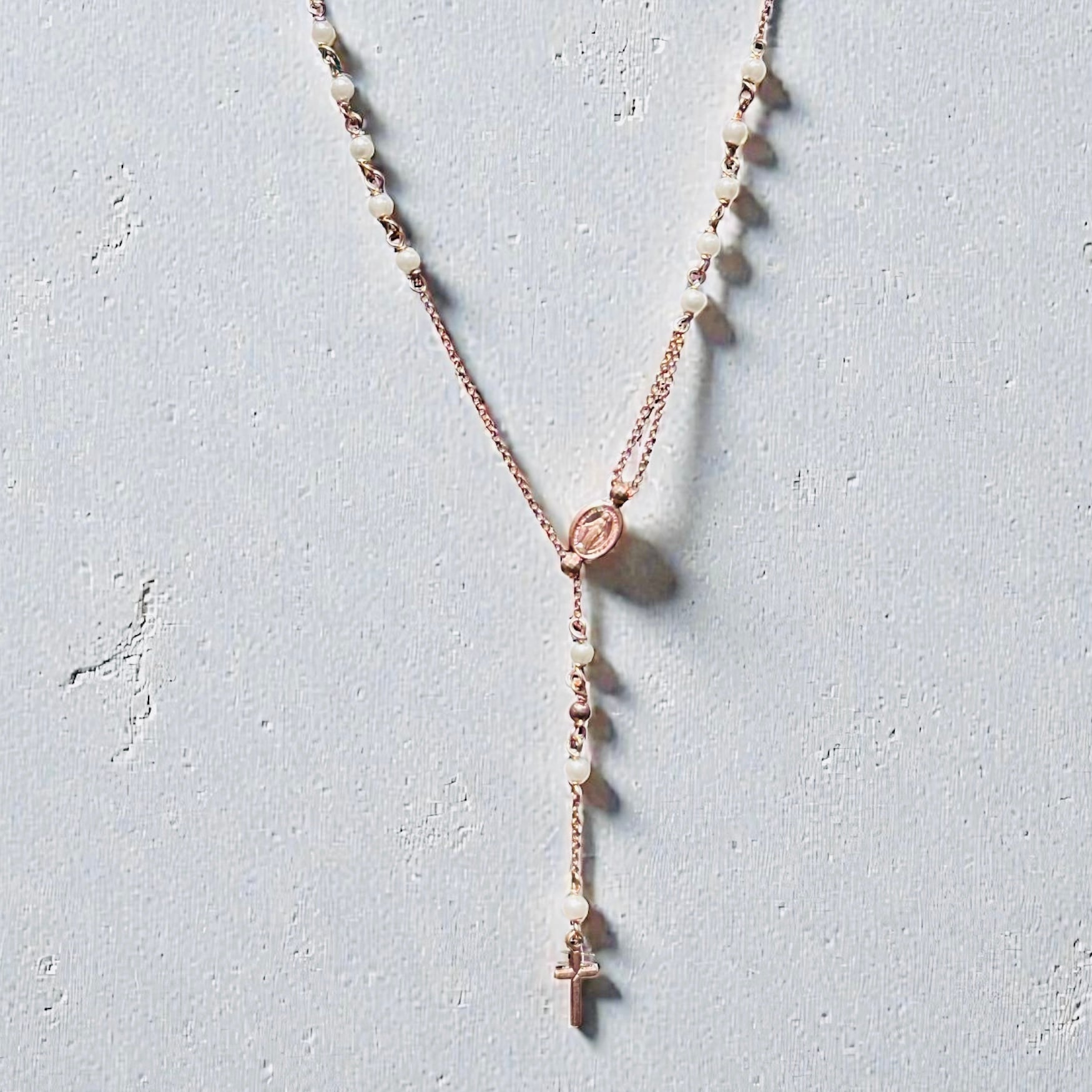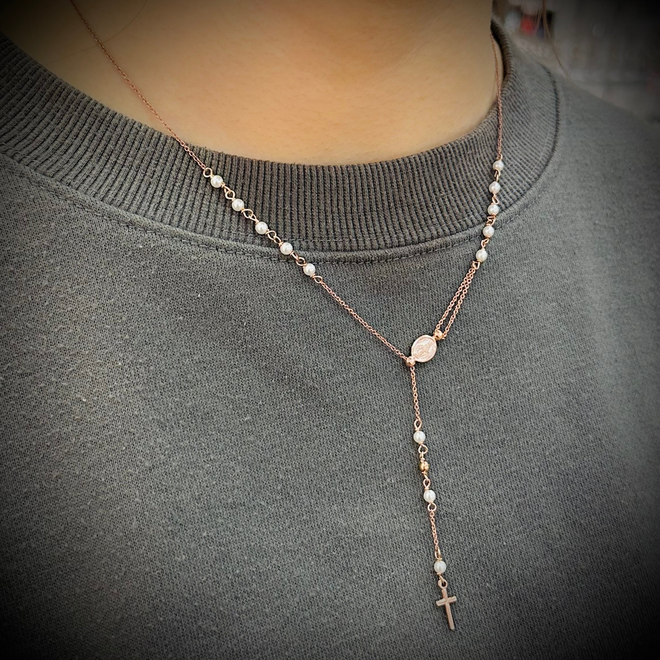ロザリオネックレス,ロザリオ,rosary necklace,Y字ネックレス,Y字チェーン,ラリエットネックレス,メダイネックレス,メダイ,マリアメダイ,クロスネックレス,十字架,パールネックレス,パール,真珠,Silver925,925シルバー,シルバー925,ピンクゴールド,ピンクゴールドコーティング,PGコーティング,ゴールドネックレス,華奢ネックレス,きれいめアクセサリー,大人可愛い,ユニセックス,メンズネックレス,レディースネックレス,プレゼント