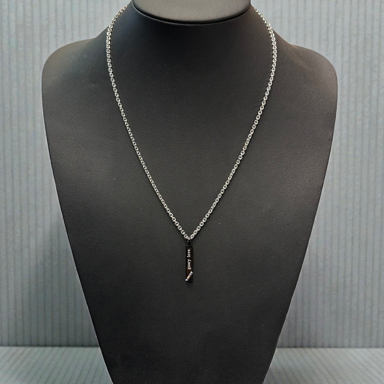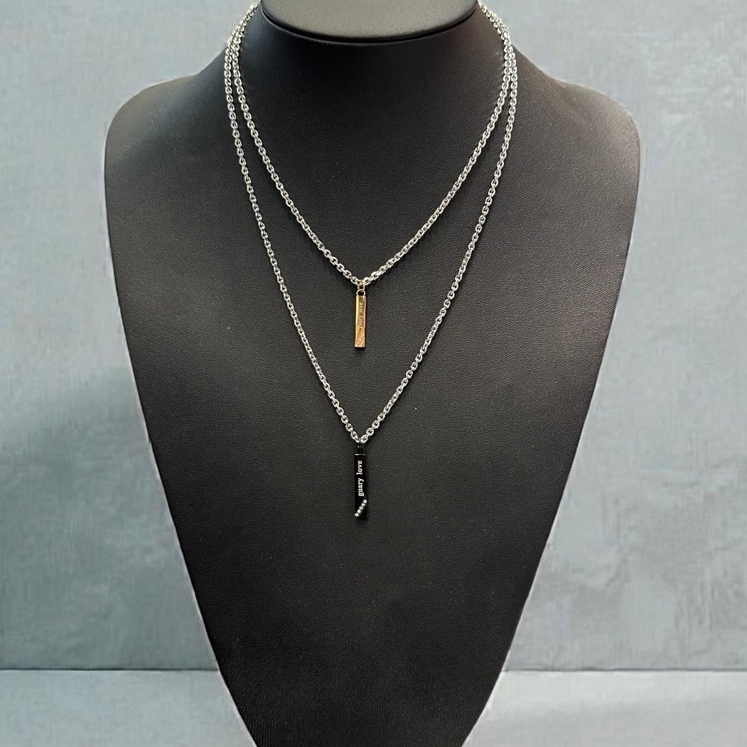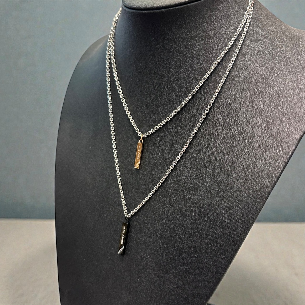 送料無料 ステンレスペアネックレス 50cm&40cmサージカルステンレス 金属アレルギー対応 ネックレス プレート シンプル アクセサリー バーペンダント guary love ロゴ刻印 ブラック&ゴールド ジルコニア入り カップル お揃い 大人ストリート