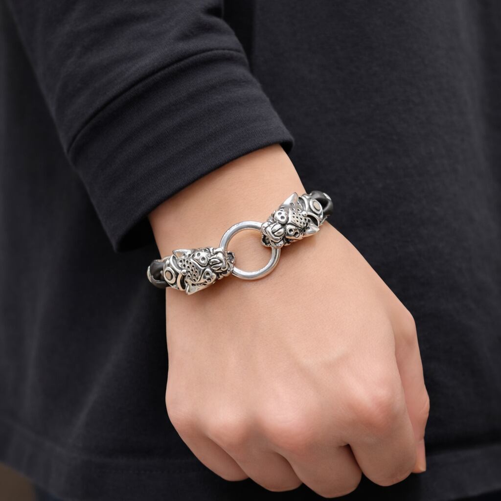 ワイルドさの中に高級感があり、ただのレザーブレスとは別格のオーラを放ちます。
