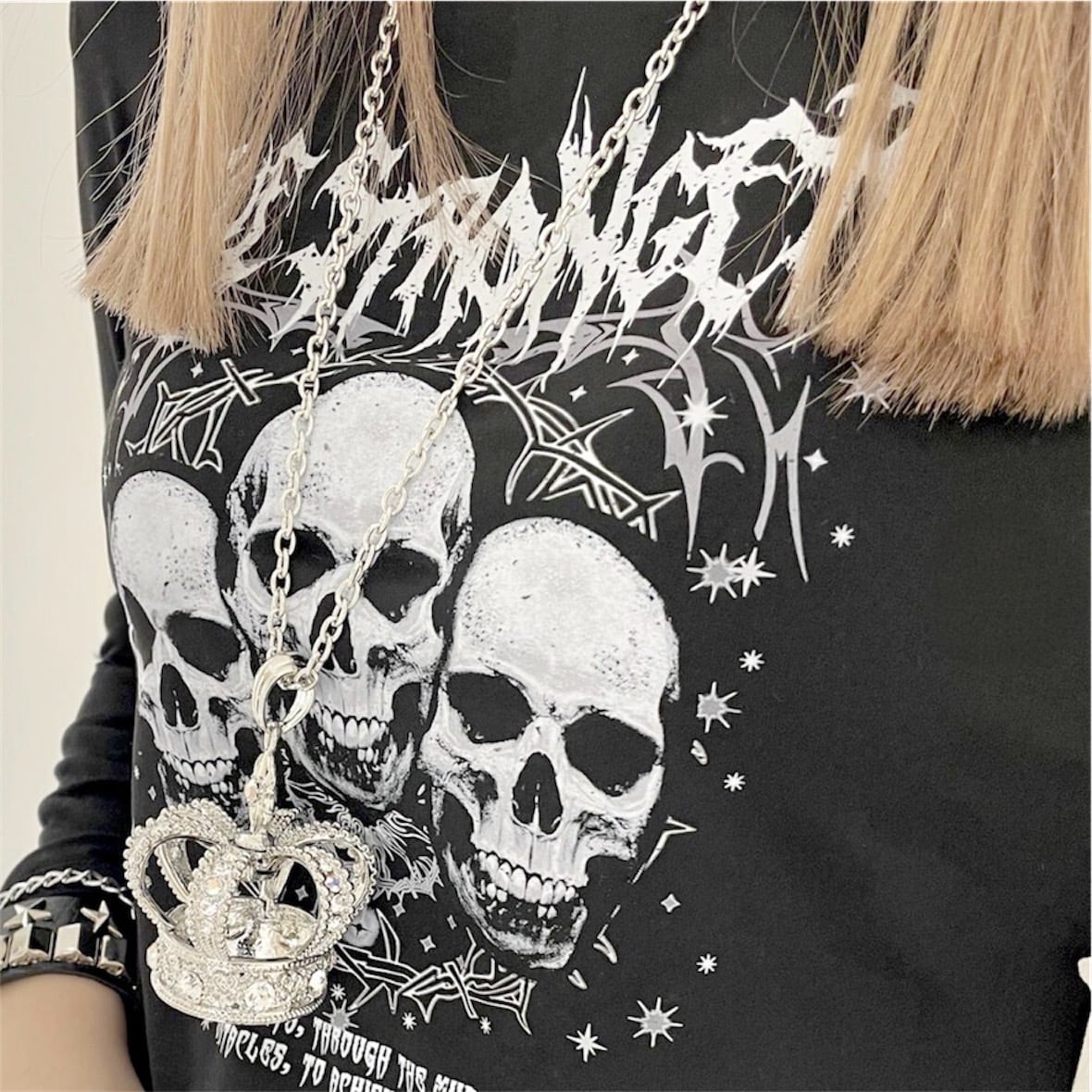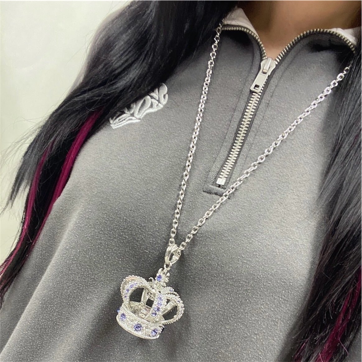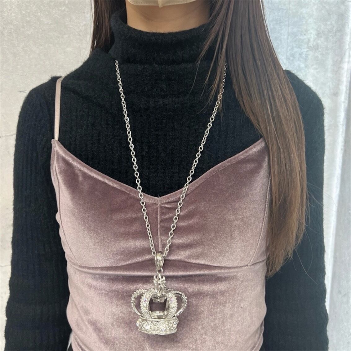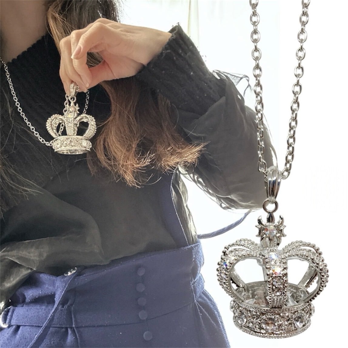 送料無料 クラウンネックレス 70cm 王冠モチーフ シルバーネックレス クラウンペンダント シルバー ネックレス ビッグサイズ 特大 ロリータ 原宿系 地雷系 サブカル ロック メンズ レディース ストリート ヒップホップ