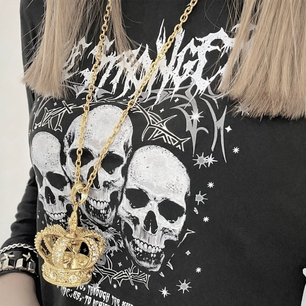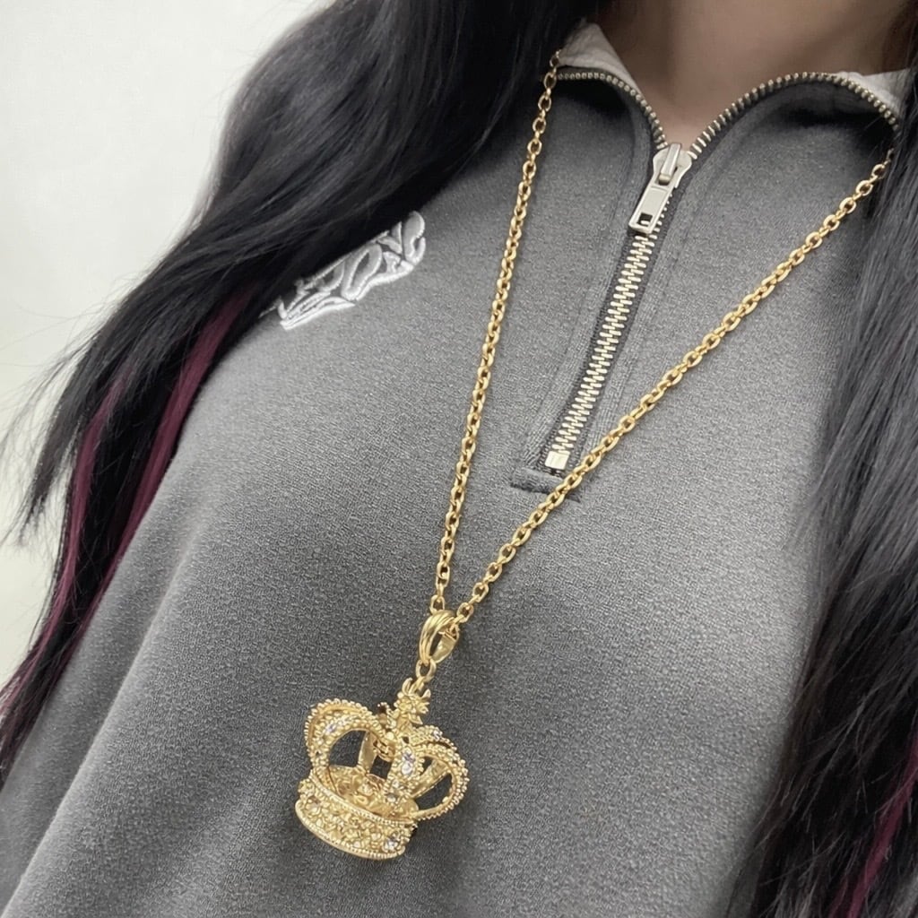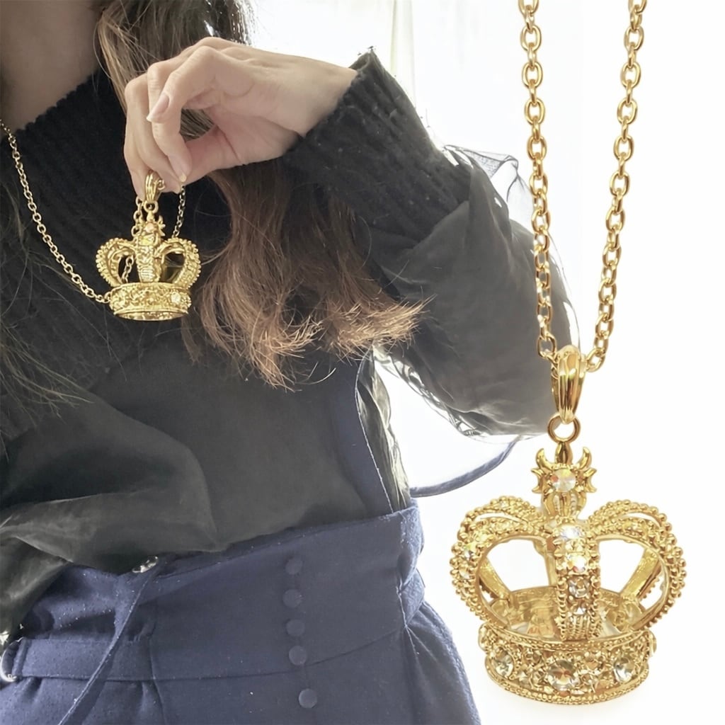 送料無料 クラウンネックレス 70cm 王冠モチーフ ゴールドネックレス クラウンペンダント ゴールド ネックレス ビッグサイズ 特大 ロリータ 原宿系 地雷系 サブカル ロック メンズ レディース ストリート ヒップホップ