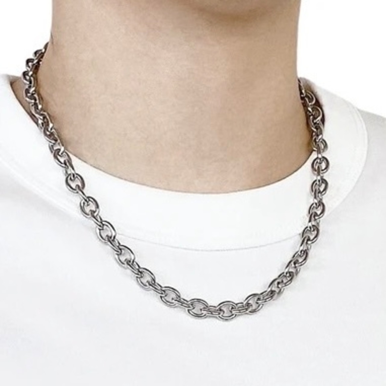送料無料 マンテルチェーンネックレス チャンキーチェーン 50cm 45cm 幅8mm ステンレスチェーン ステンレスネックレス サージカルステンレス シルバー SUS316L 金属アレルギー対応 アレルギーフリー トグル留め マンテル留め トレンド ストリート お洒落