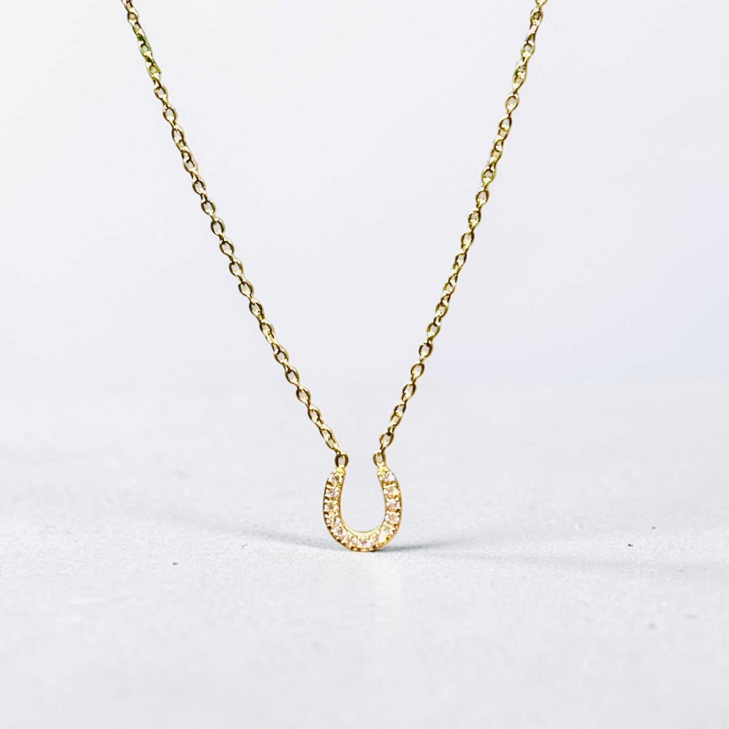 送料無料 ホースシューネックレス 42〜47cm アジャスター付き サージカルステンレス ゴールド CZダイヤモンド ホースシューペンダント ゴールドネックレス 馬蹄ネックレス 蹄鉄 ジルコニア ステンレスネックレス 金属アレルギー対応