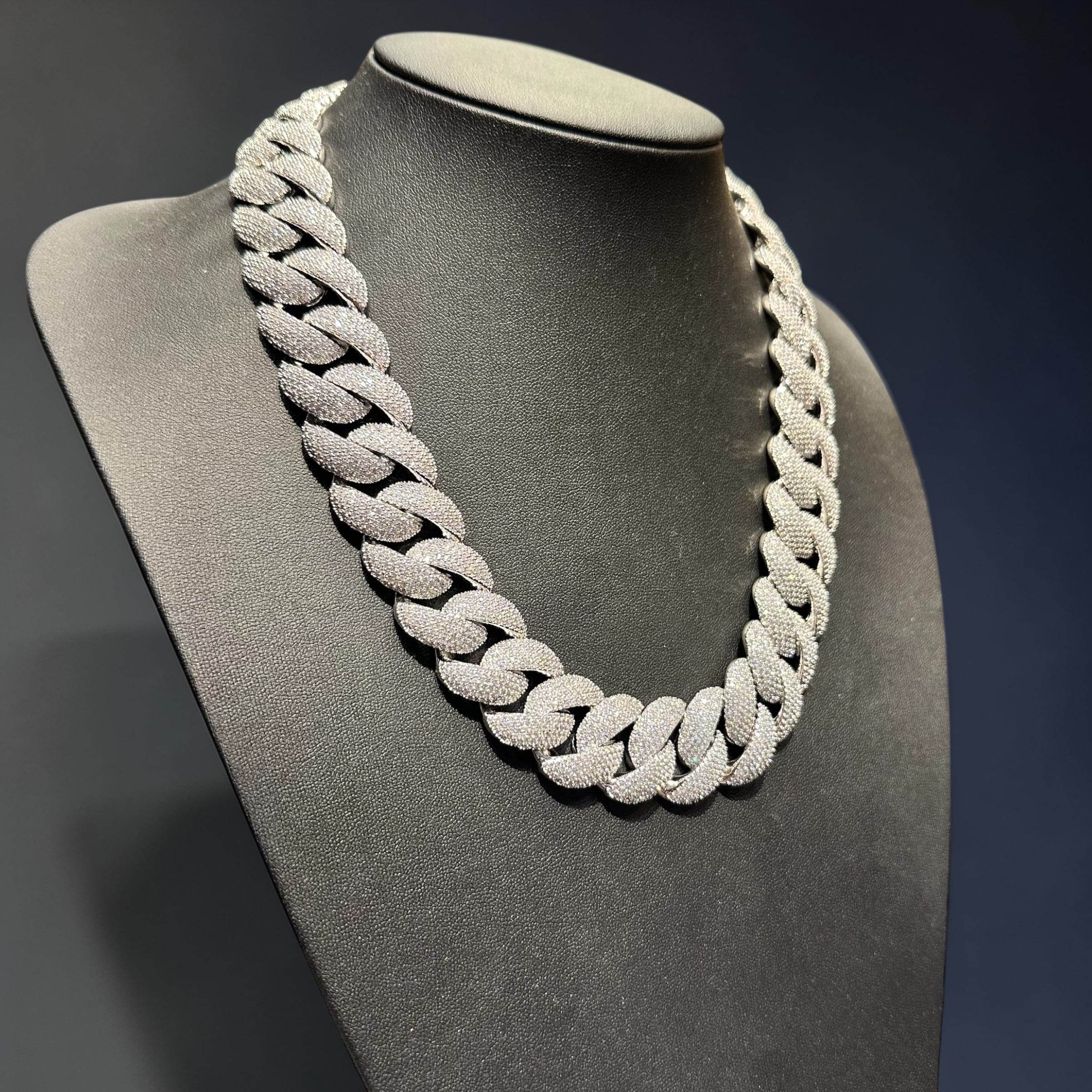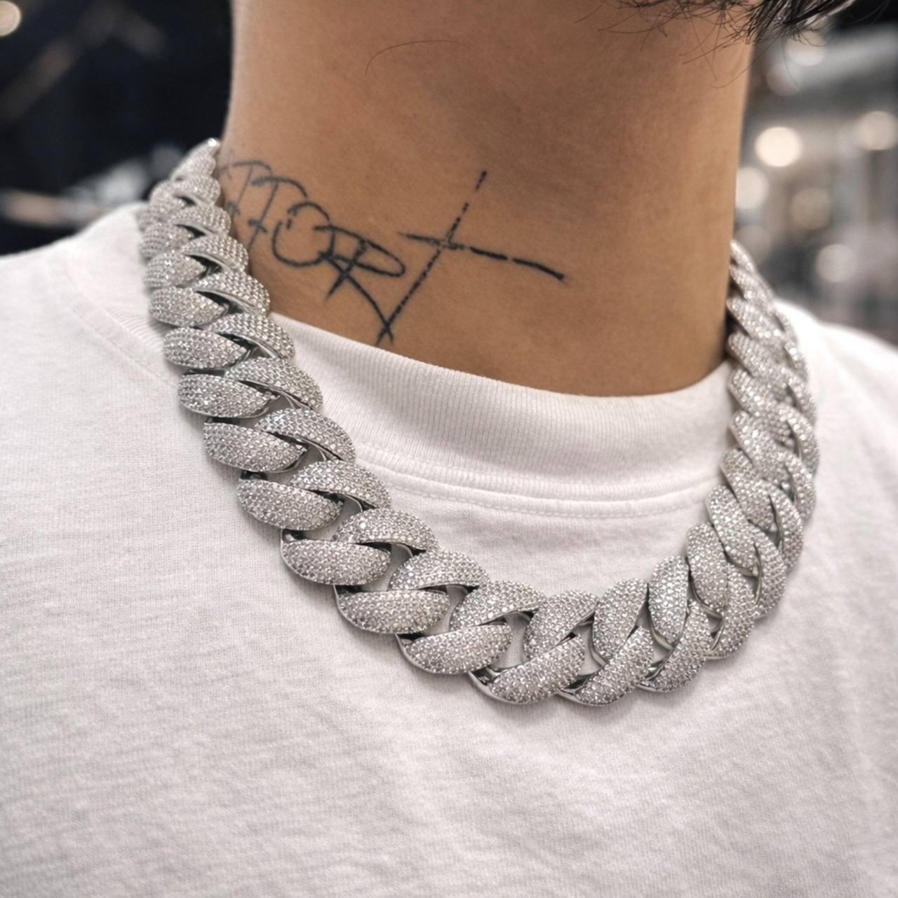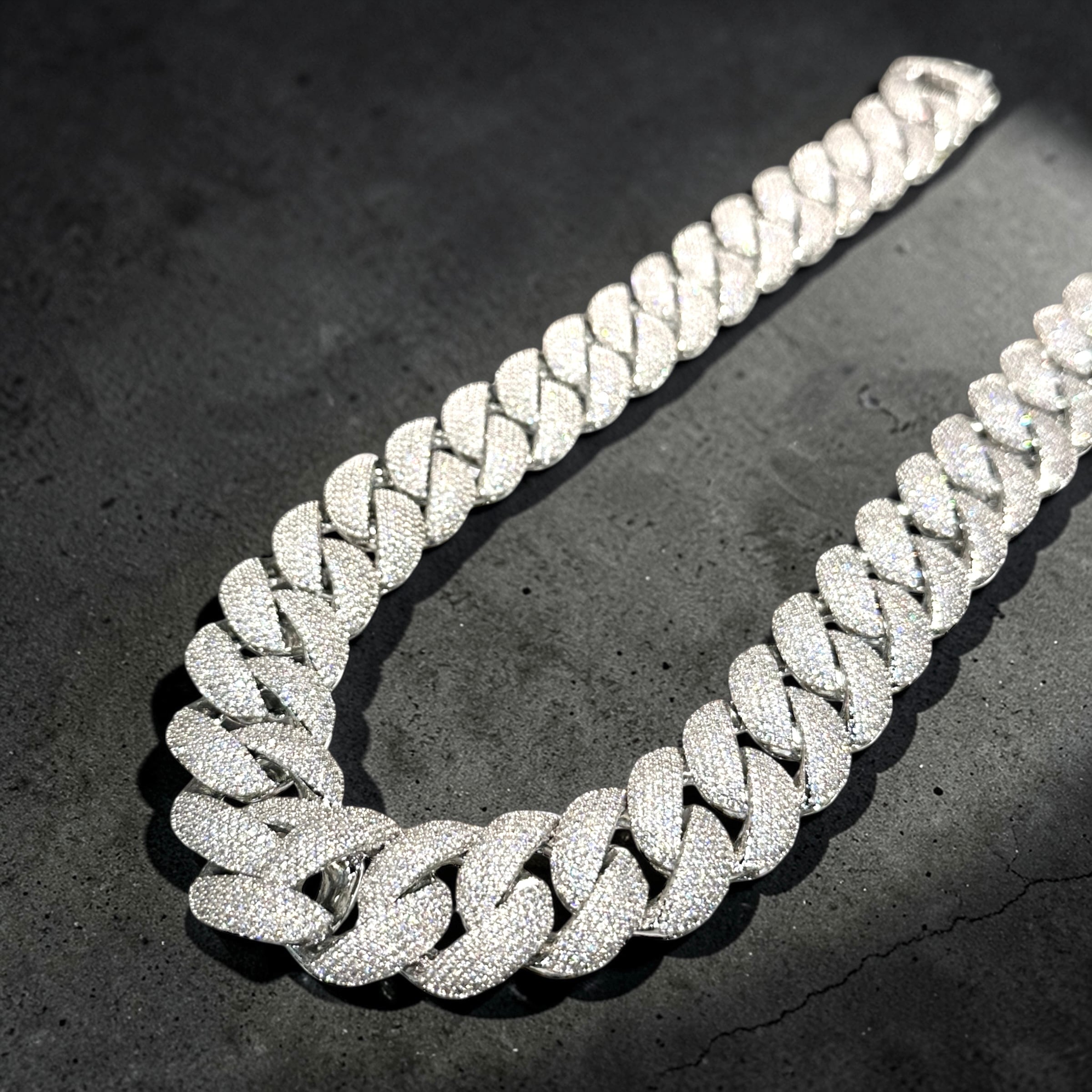送料無料 フルアイスアウト 喜平ネックレス 50cm 幅24mm 喜平チェーン マイアミキューバン キューバンリンク シルバー ネックレスチェーン CZダイヤ ブリンブリン 極太 ラグジュアリー ヒップホップジュエリー ストリート