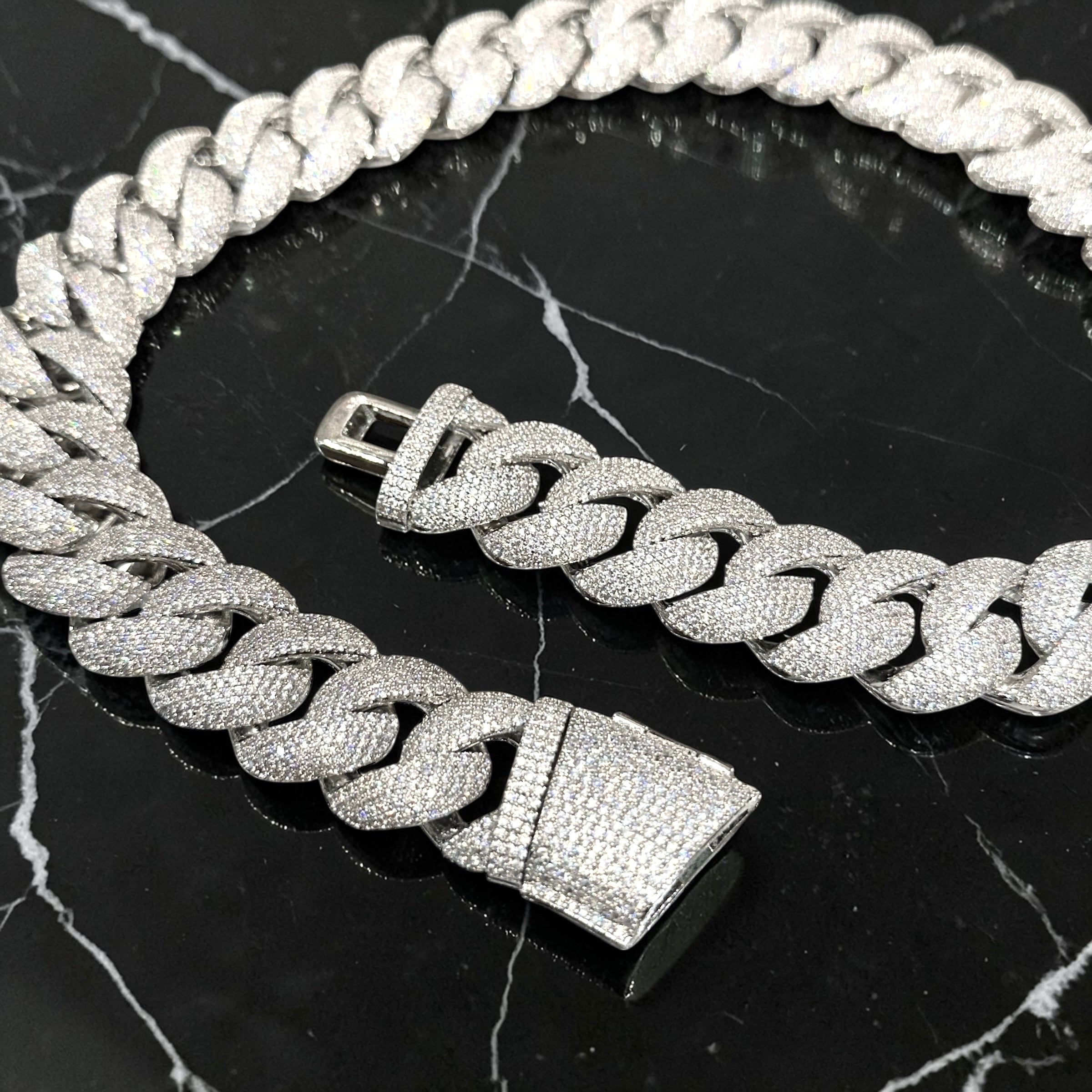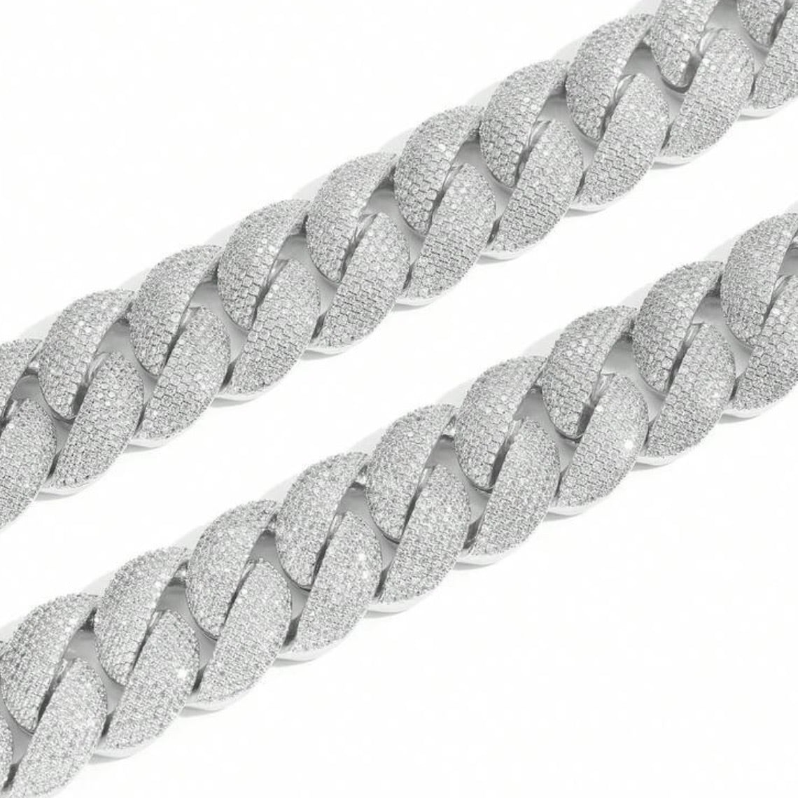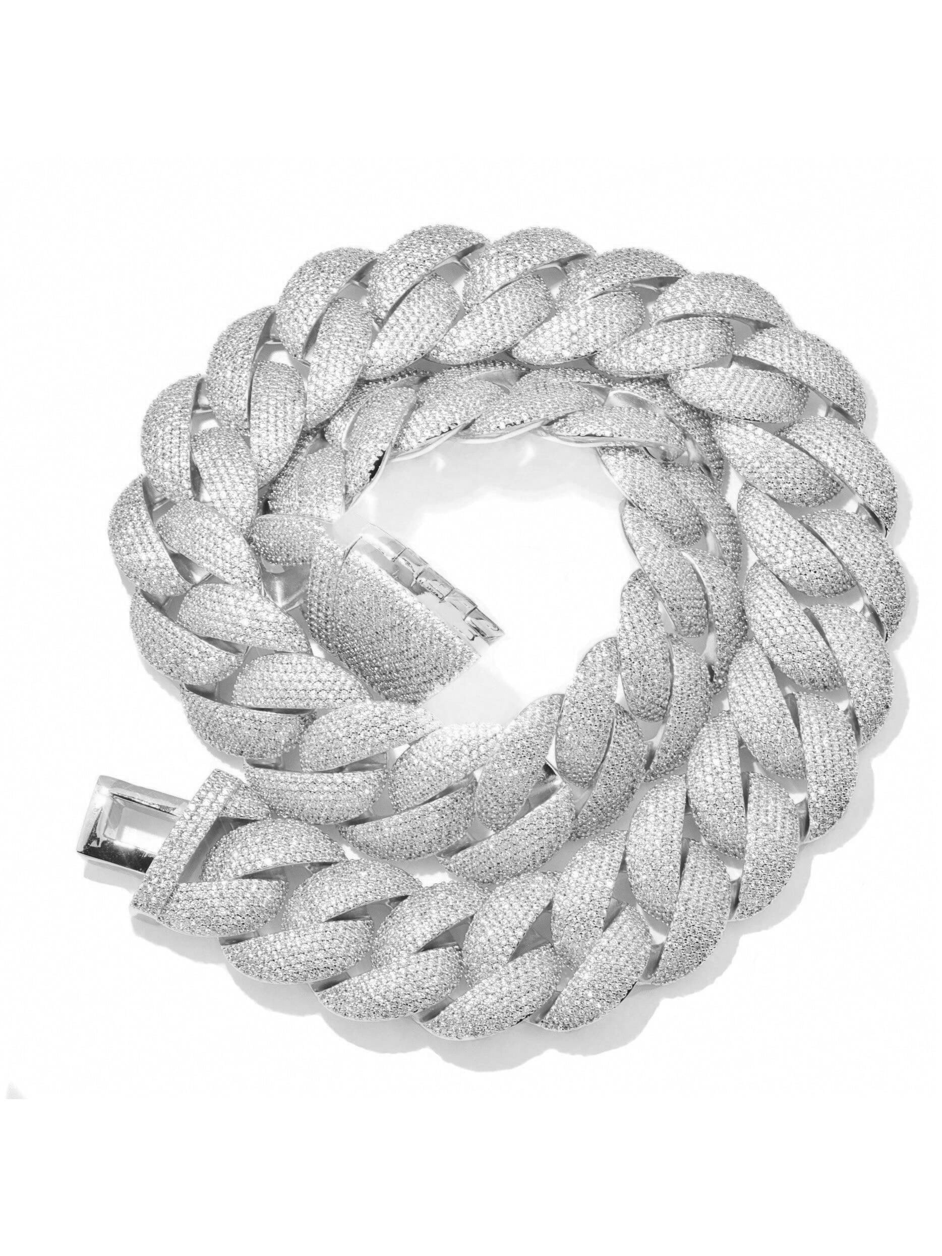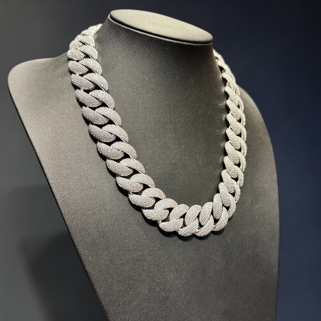 送料無料 フルアイスアウト 喜平ネックレス 50cm 幅24mm 喜平チェーン マイアミキューバン キューバンリンク シルバー ネックレスチェーン CZダイヤ ブリンブリン 極太 ラグジュアリー ヒップホップジュエリー ストリート