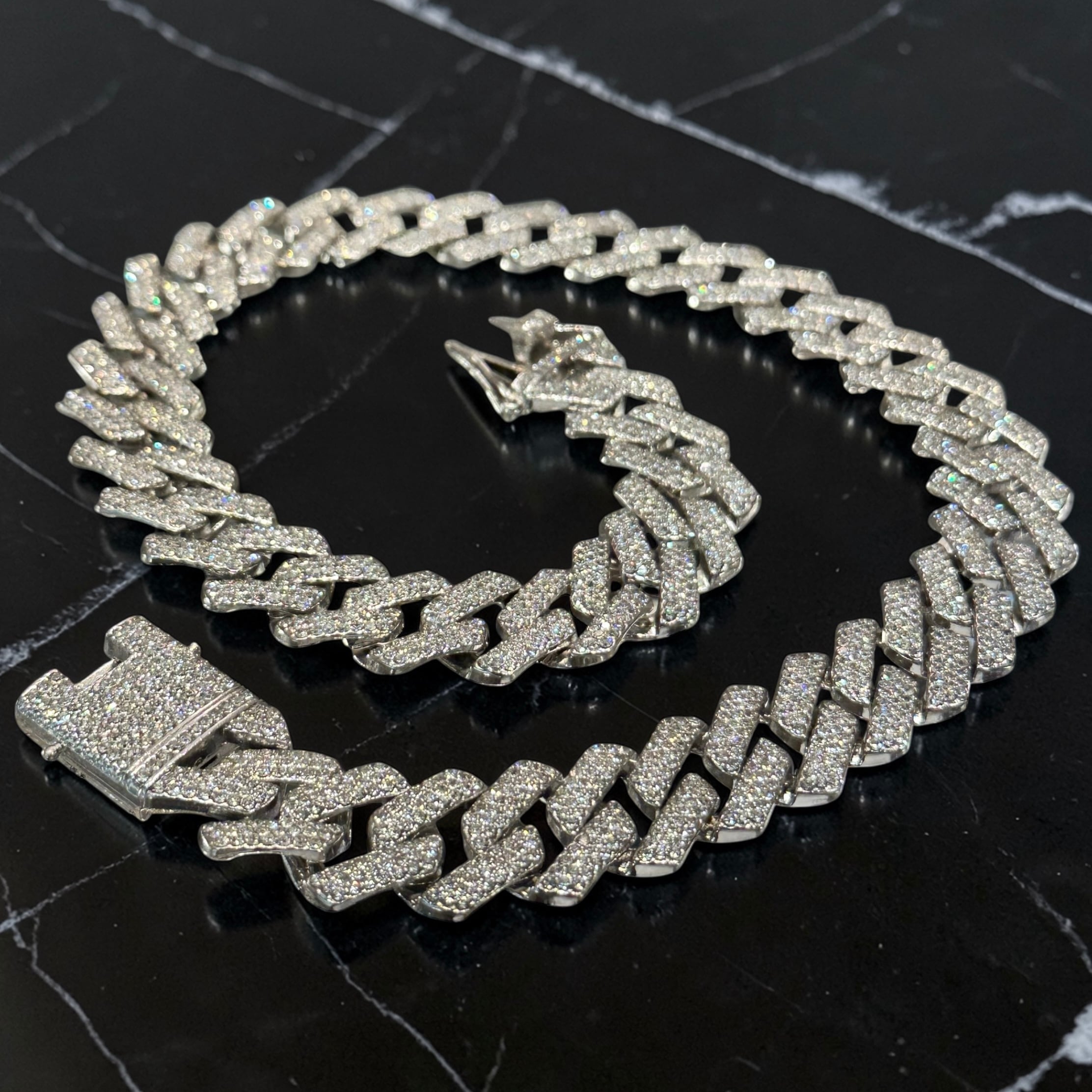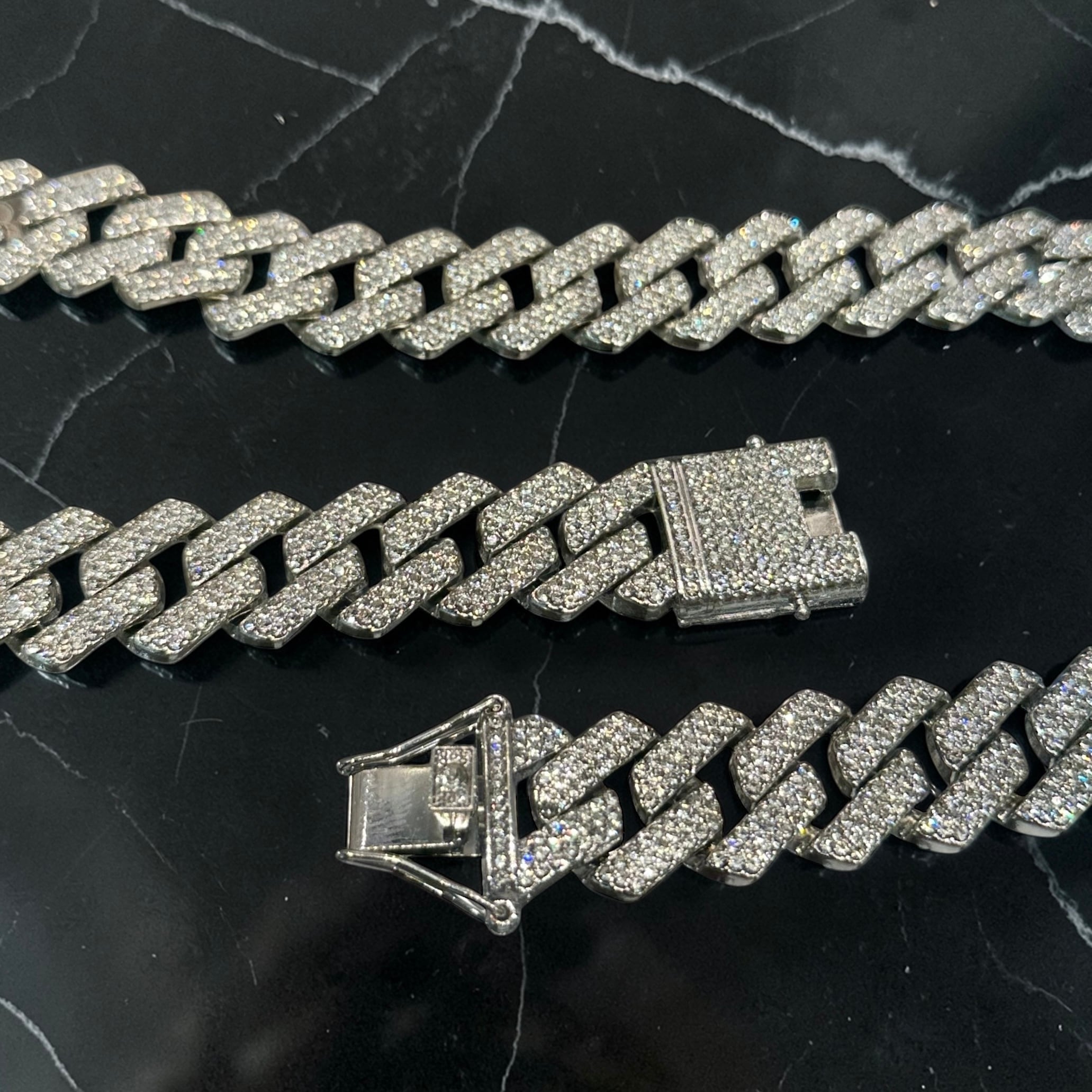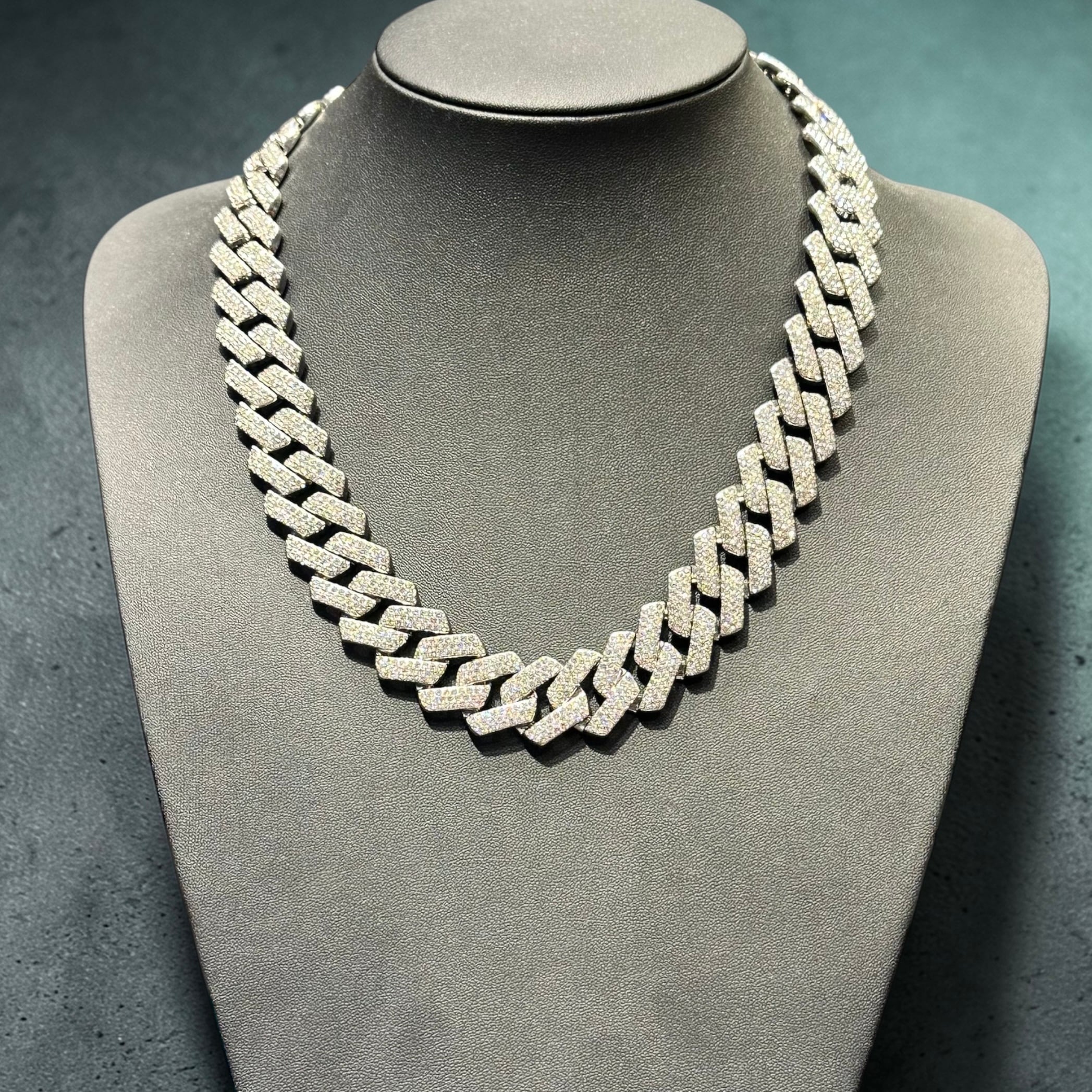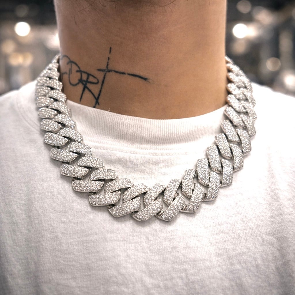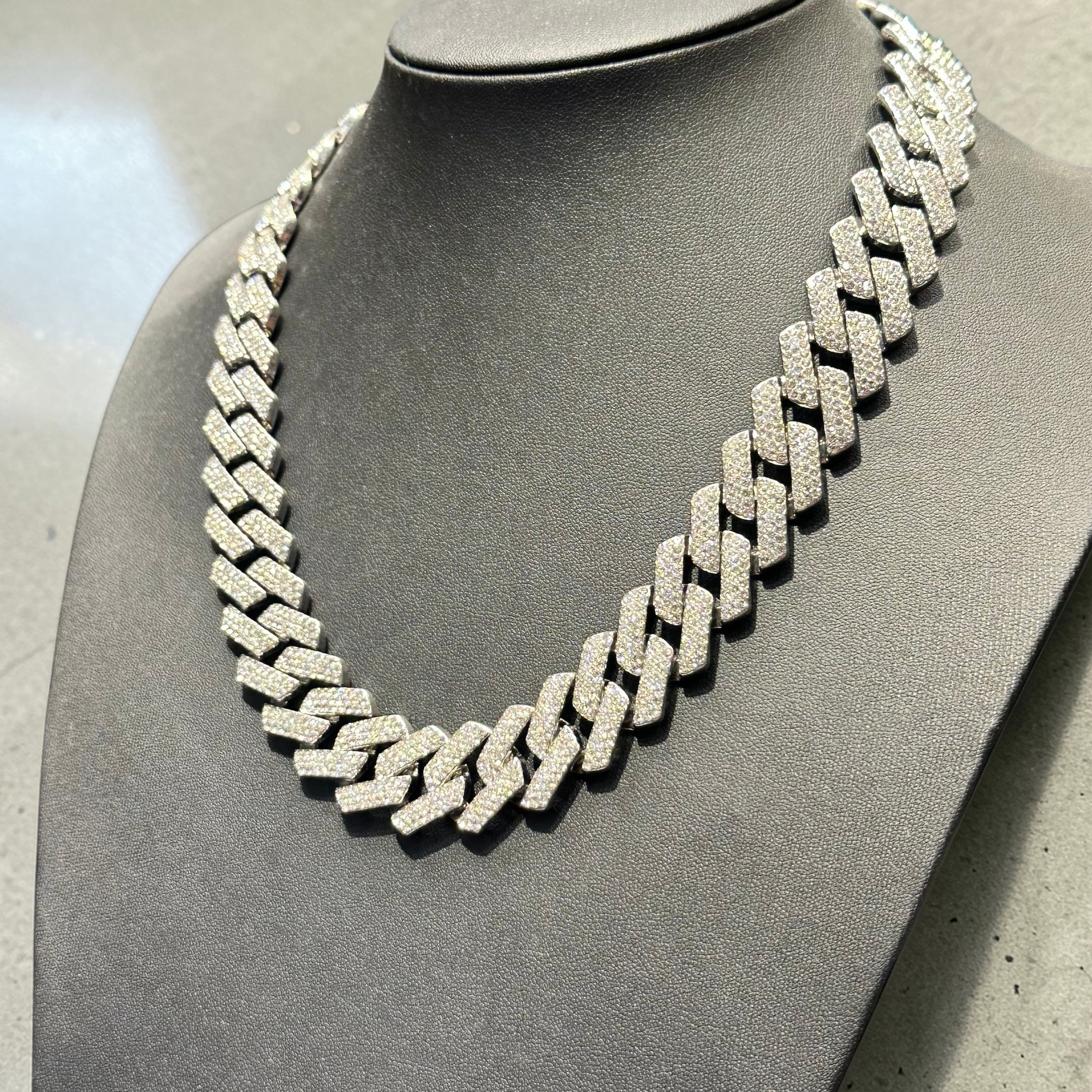 送料無料 菱形 喜平ネックレス 50cm 幅20mm 喜平チェーン シルバー マイアミプロングキューバン CZダイヤモンド ネックレスチェーン シルバーネックレス ブリンブリン 極太 HIPHOP ヒップホップ ストリート ラグジュアリー
