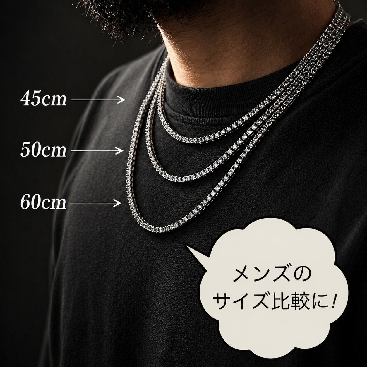 存在感抜群のテニスチェーンネックレスです。