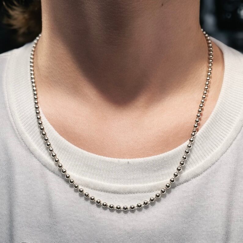 送料無料 シルバー925 ボールチェーン 50cm 幅3.5mmシルバーチェーン 925刻印あり ネックレスチェーン シルバーネックレス silver925 SV925 シルバーアクセ ストリート メンズアクセ チェーン シンプル