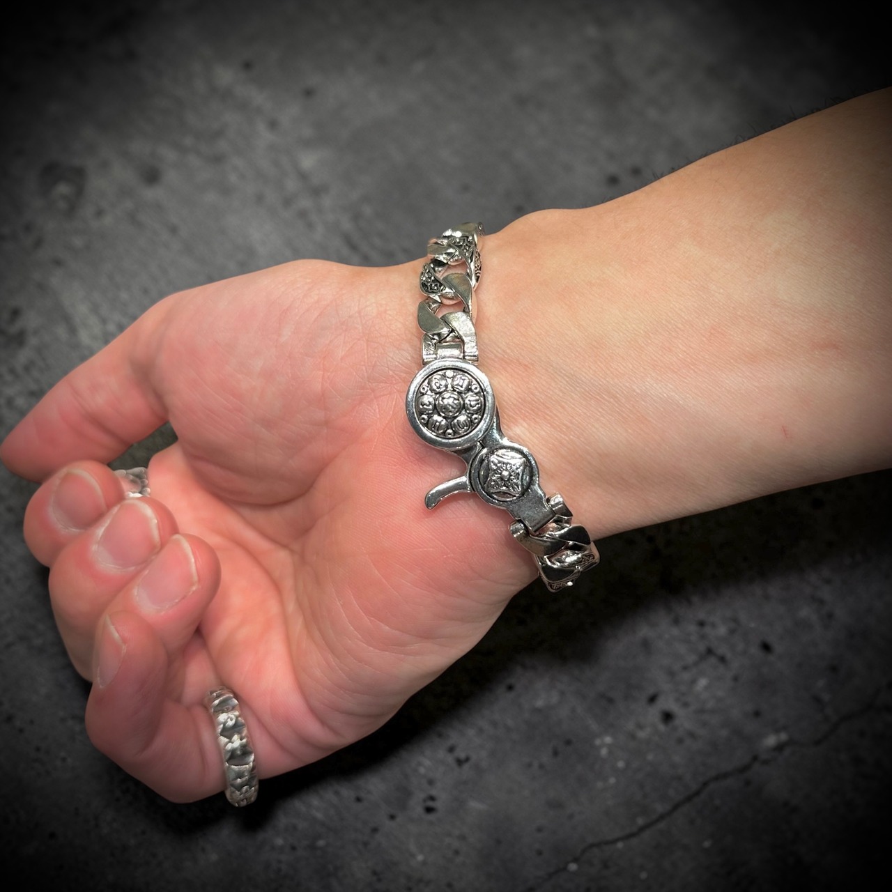 細部まで彫り込まれたアンティーク調デザインが、高級感とストリート感を両立。