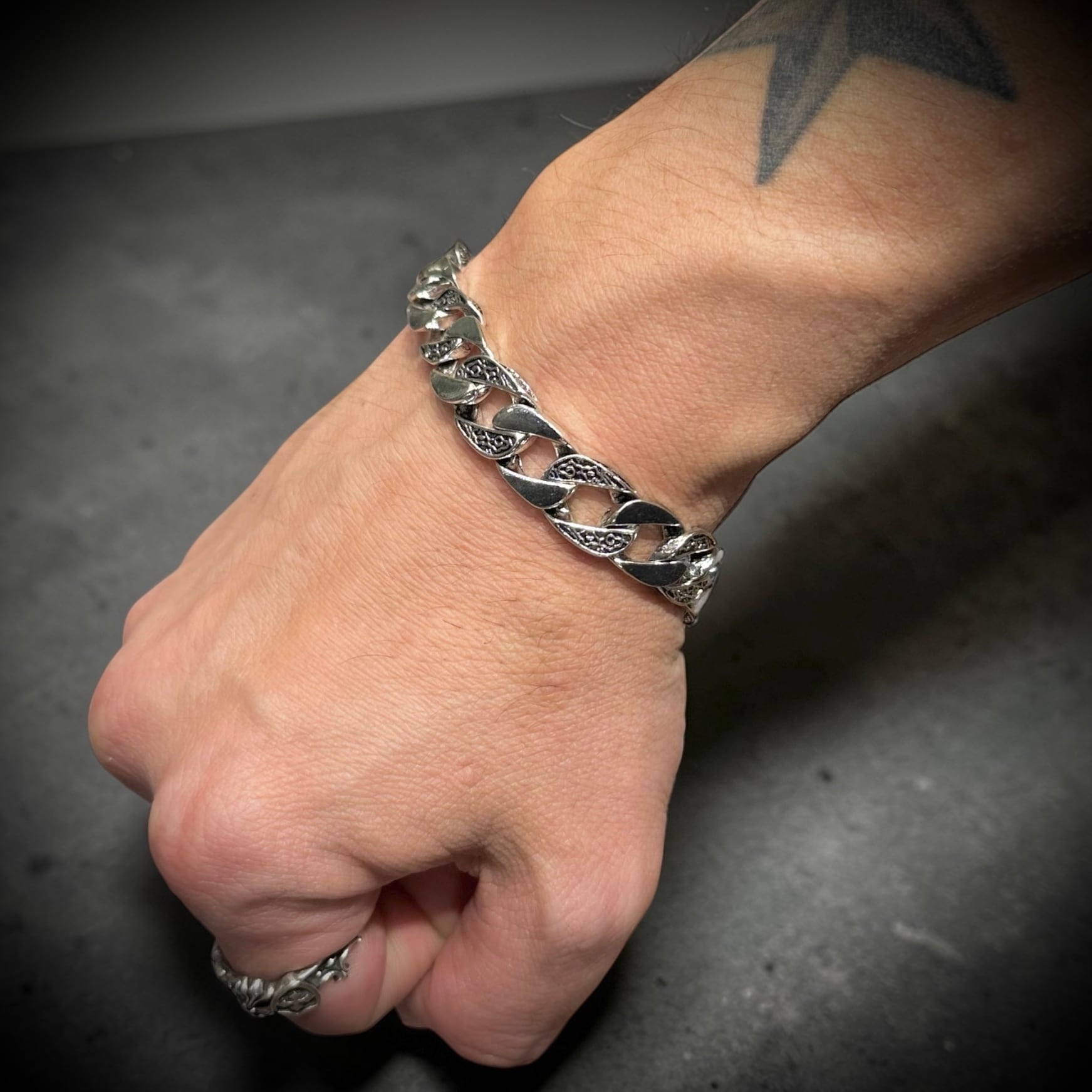 ブレスレット メンズ シルバー ブレスレット 喜平風 チェーンブレスレット 太め ゴツめ 重厚感 ストリート ヒップホップ バイカー アンティーク調 メンズアクセサリー