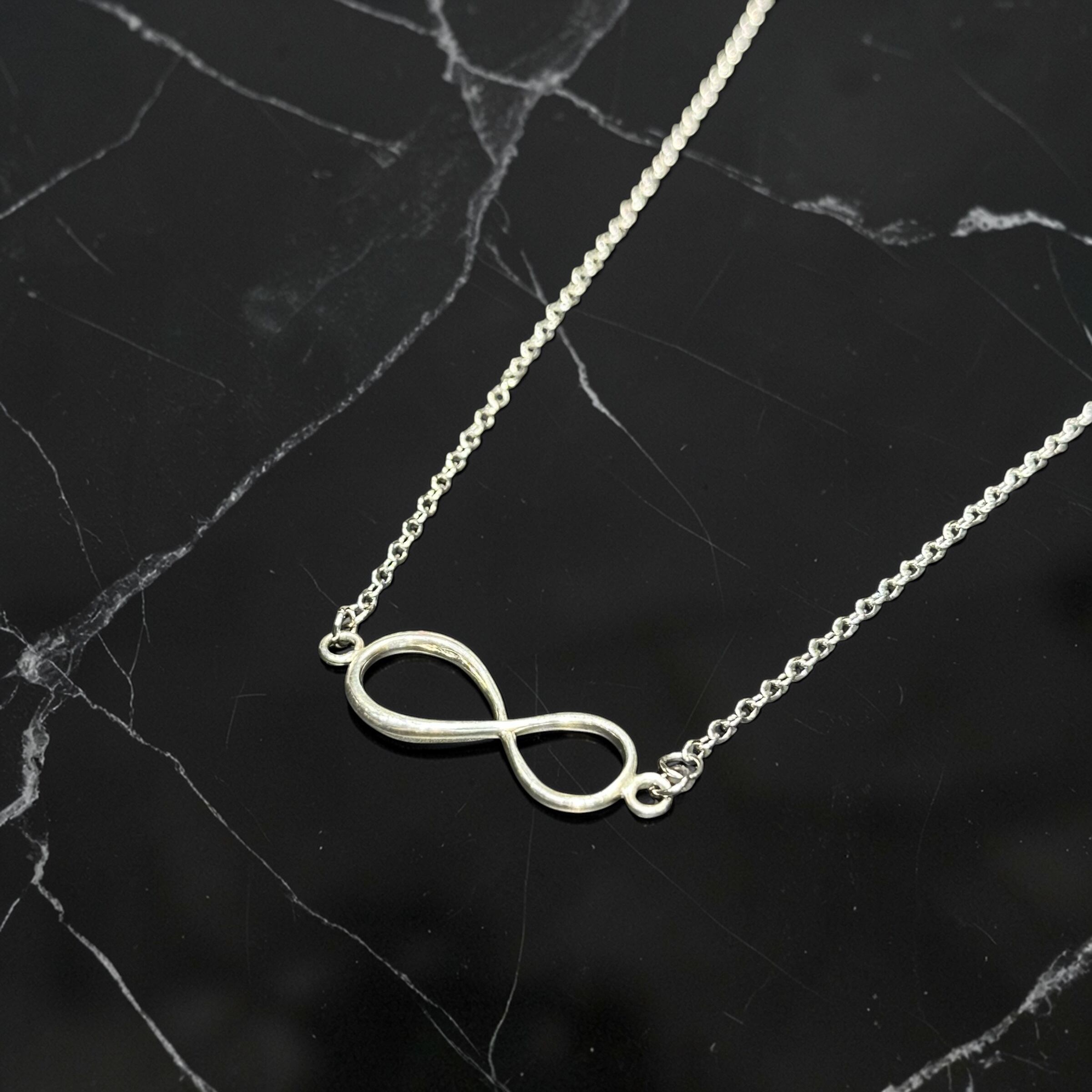 シンプルで洗練された「インフィニティ(∞)」モチーフネックレス。