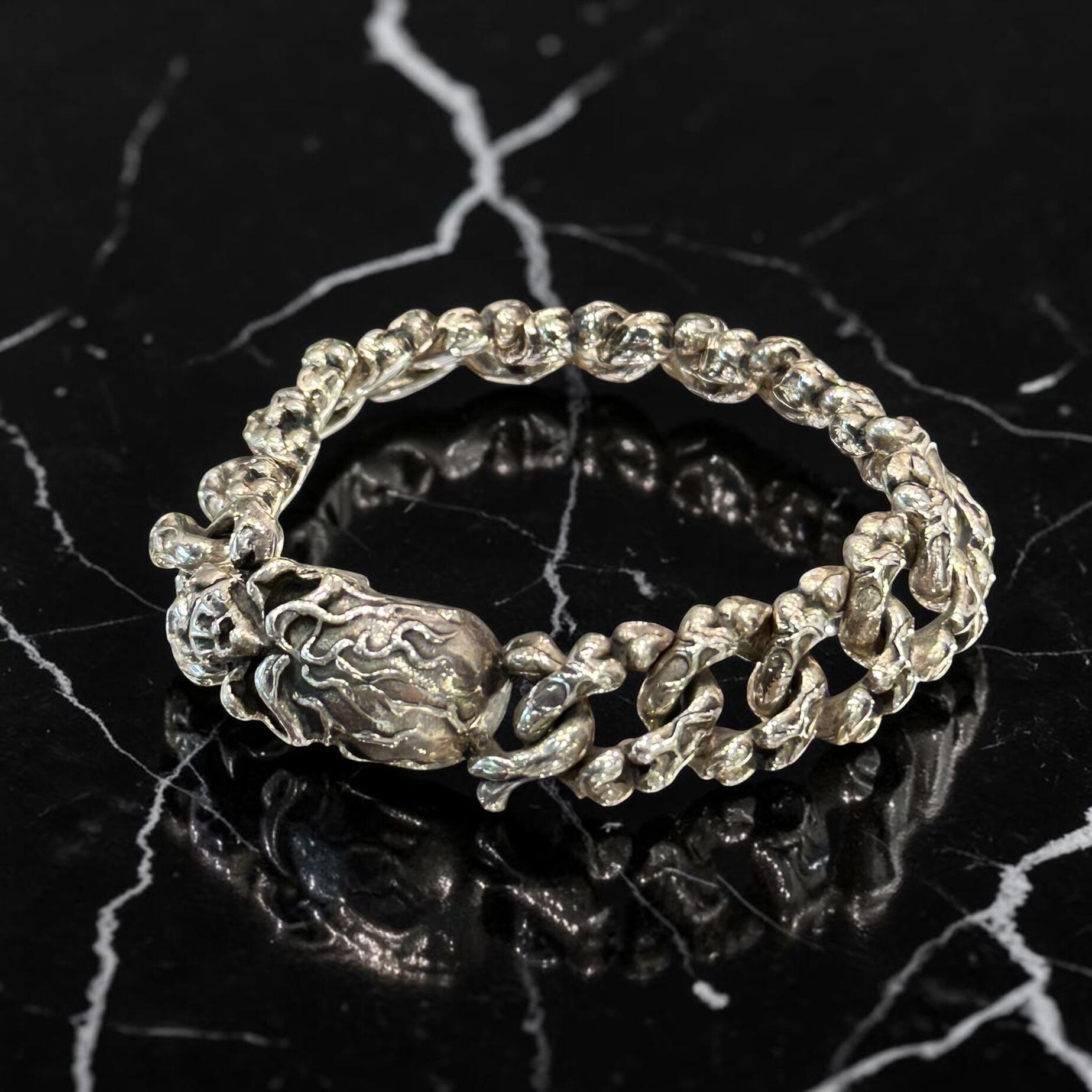 無骨な存在感を放つスカルチェーンブレスレット。