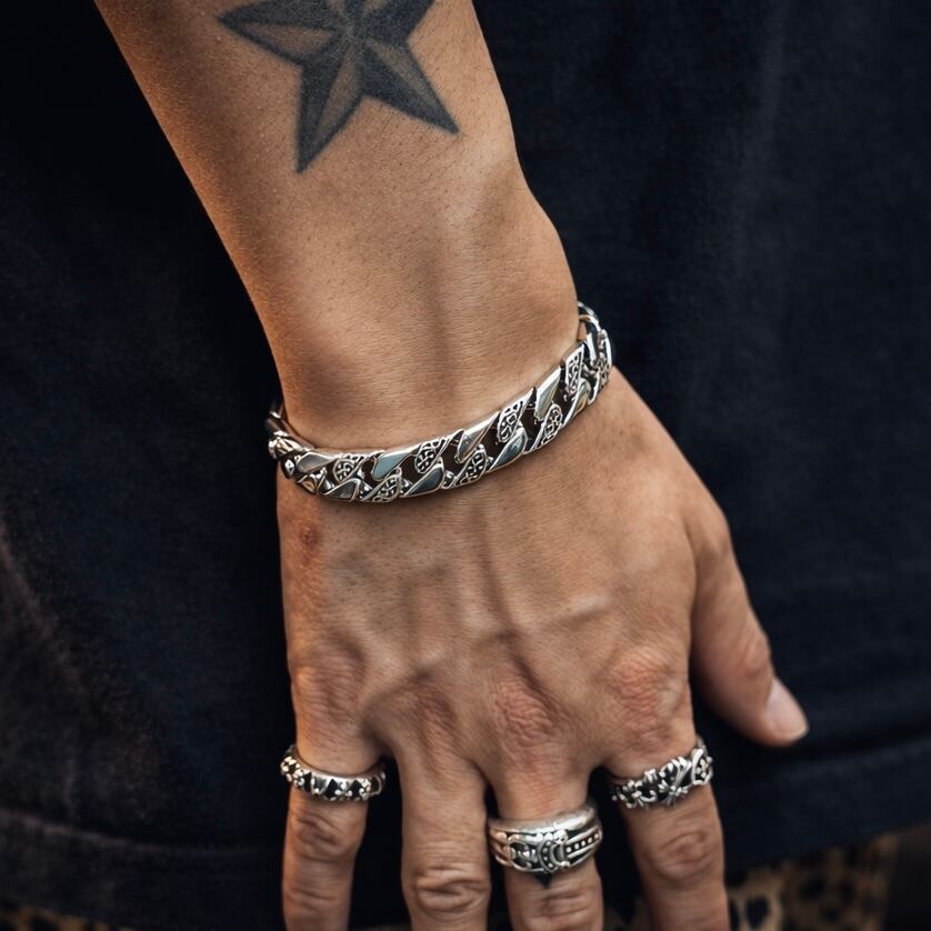 重厚感と存在感を兼ね備えた、極太チェーンブレスレット。