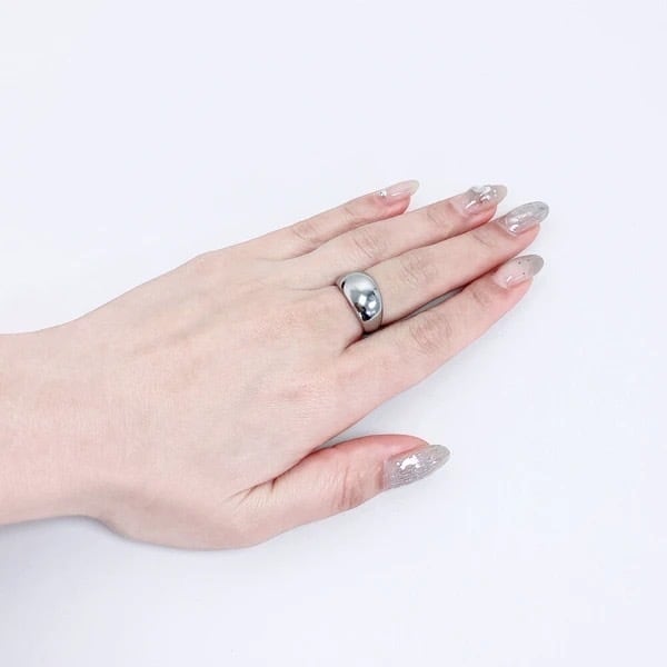 鏡面仕上げの滑らかなカーブが光を反射し、指元にラグジュアリーな輝きをプラスします。