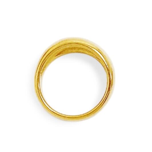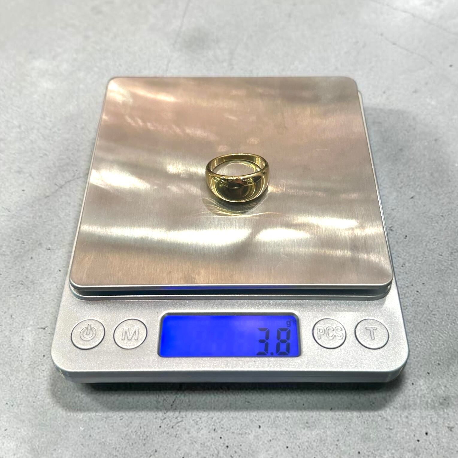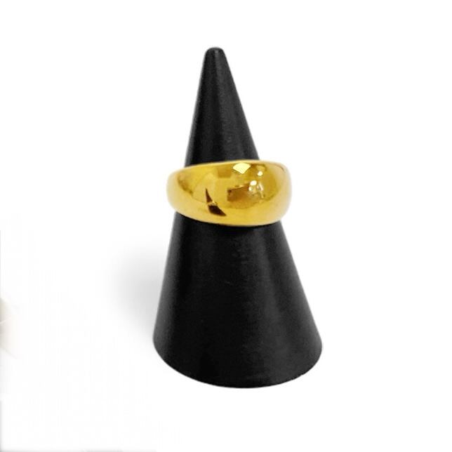 丸みのあるフォルムが指元にボリュームを与え、1点着けでもしっかり主張するワイドリング。