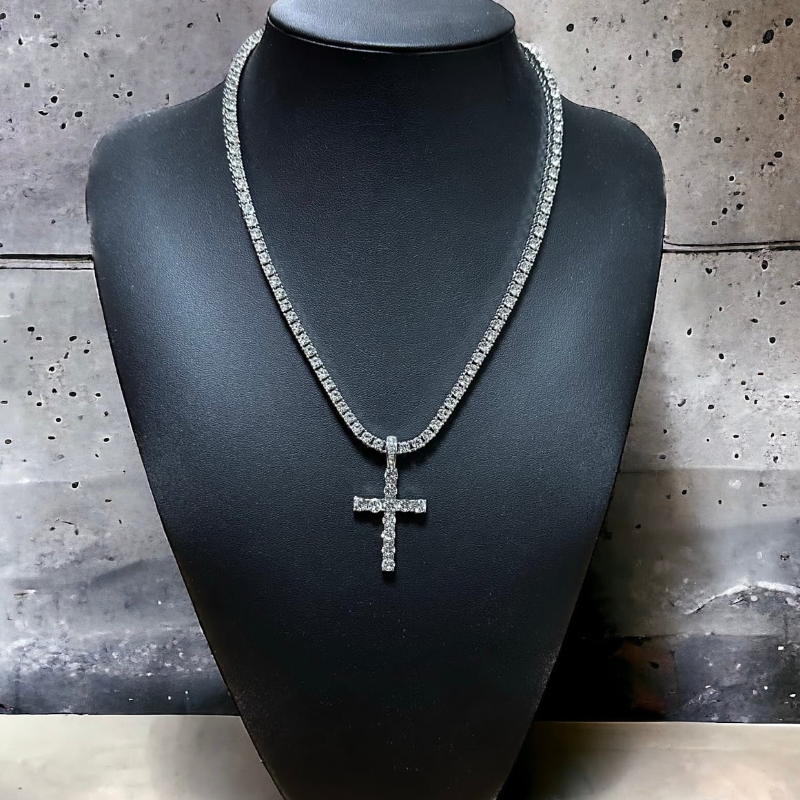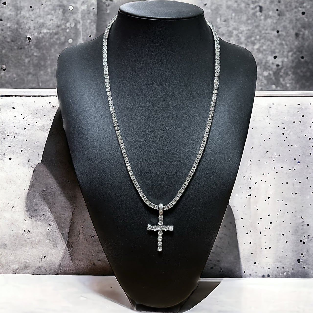 送料無料 クロスペンダント テニスチェーン付 60cm 50cm 45cm 幅4mm テニスネックレス シルバー ネックレスチェーン シルバーネックレス CZダイヤモンド ブリンブリン ヒップホップ HIPHOP ストリート ラグジュアリー