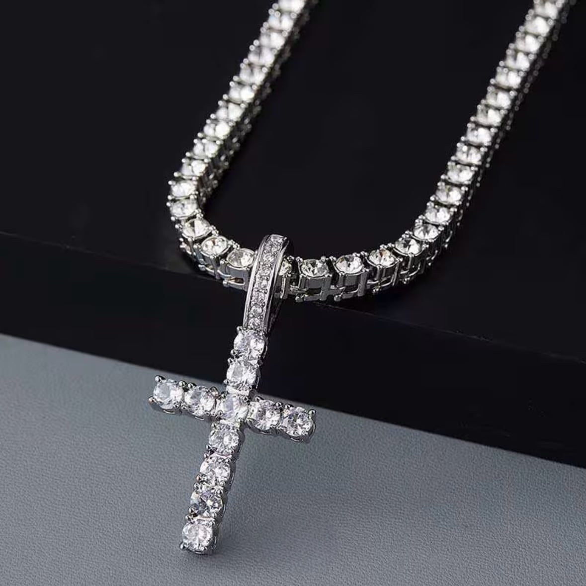 テニスチェーン ネックレス クロスペンダント 十字架ネックレス メンズ レディース シルバープレーティング 銀色ネックレス ダイヤ風ネックレス ジルコニアネックレス きらきらネックレス 高級感 韓国ファッション ストリート系 ヒップホップジュエリー B系 アクセサリー ペアネックレス プレゼント ギフト ラッパーアクセサリー ダンサーアクセサリー ユニセックス HIPHOP 韓国系 おしゃれネックレス 十字架チャーム 十字架ペンダント テニスチェーンペンダント シルバーアクセサリー