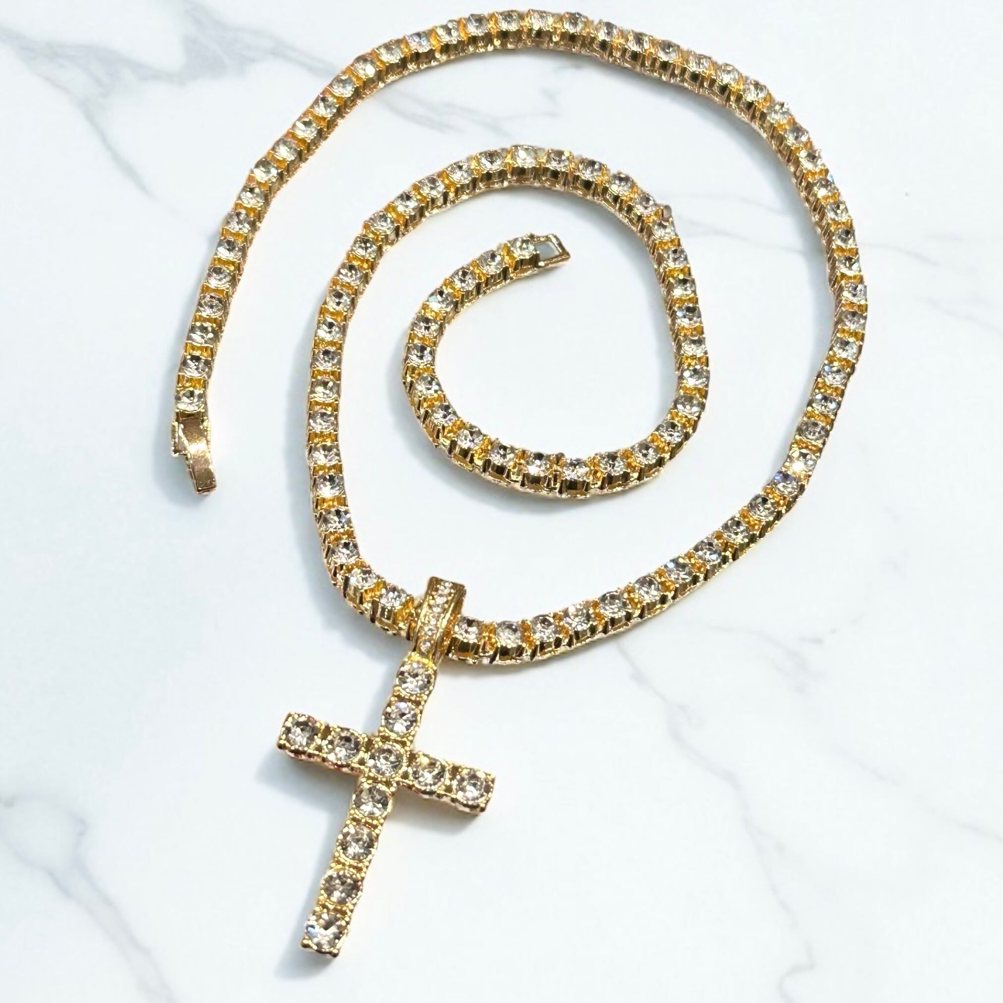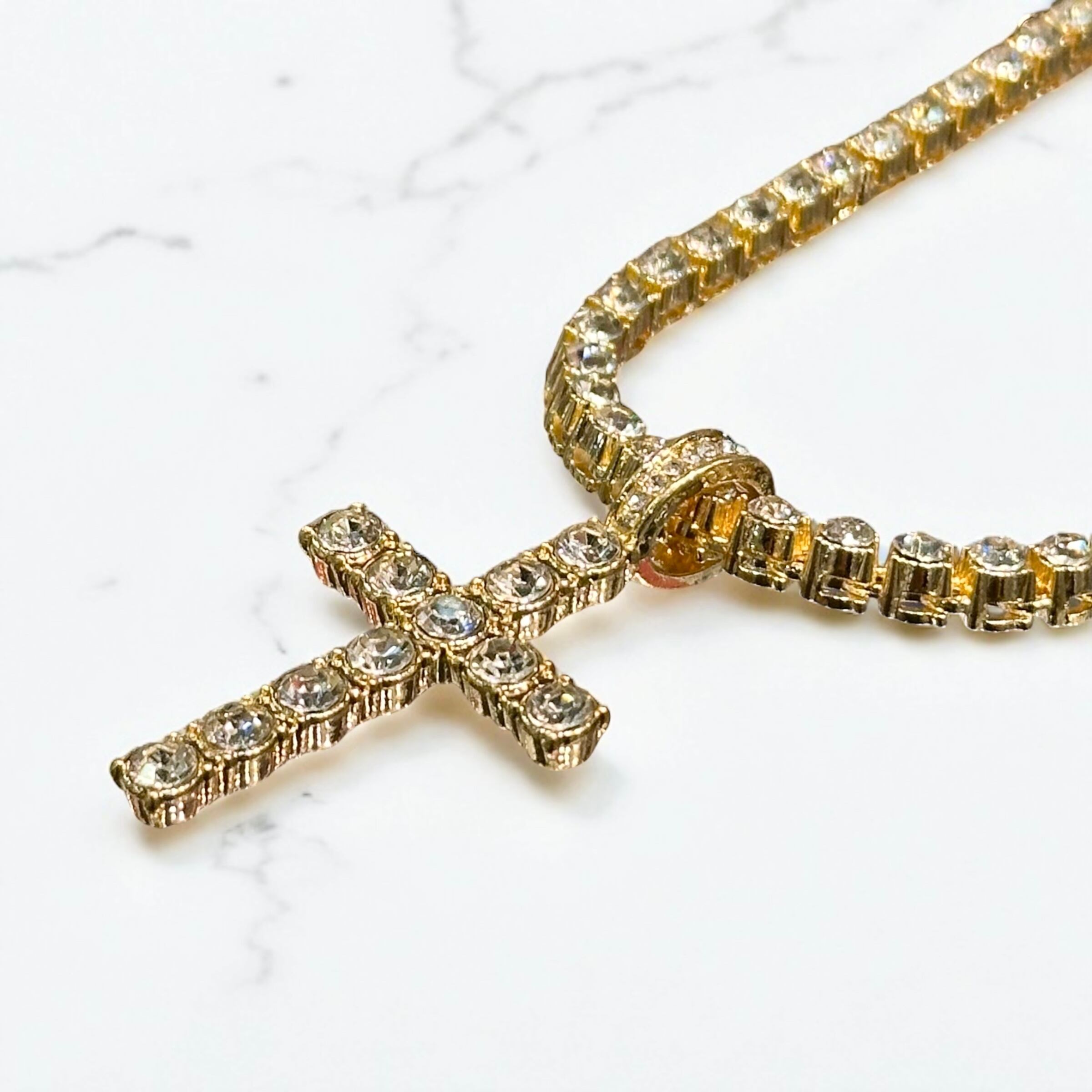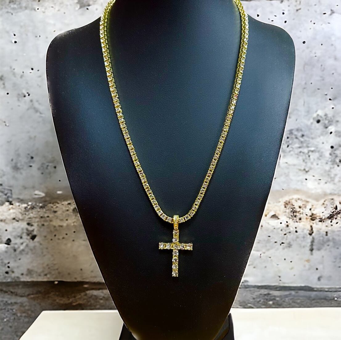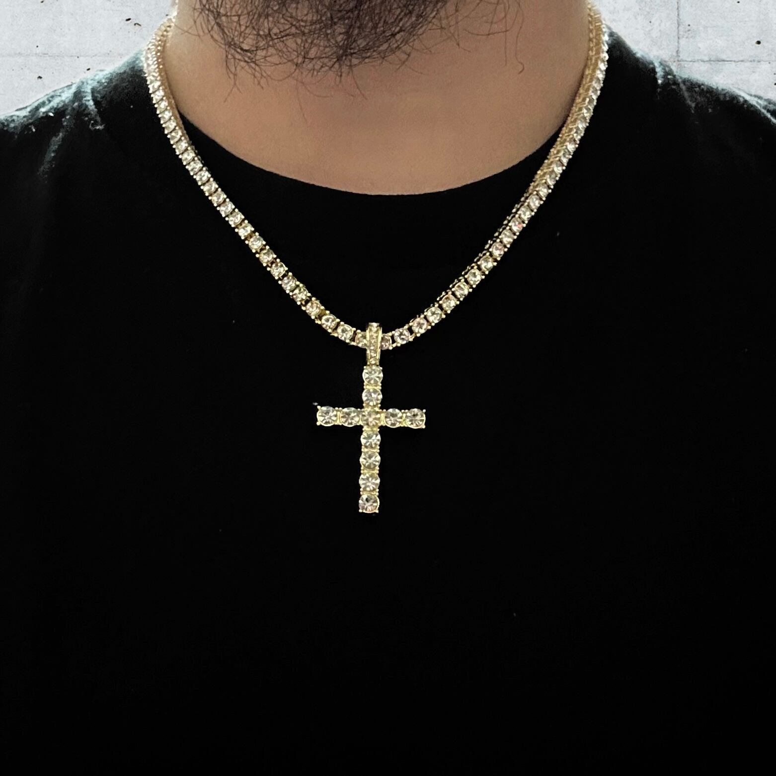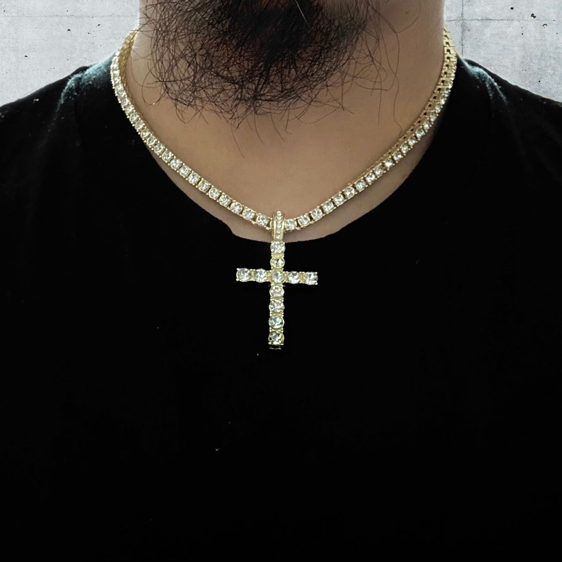 送料無料 クロスペンダント テニスチェーン付 60cm 50cm 45cm 幅4mm テニスネックレス ゴールド ネックレスチェーン ゴールドネックレス ブリンブリン ヒップホップ HIPHOP ストリート