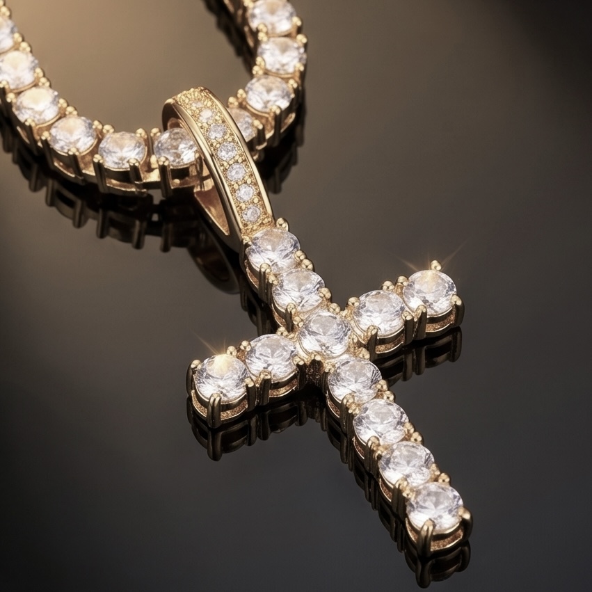 大粒のCZダイヤを施したクロスペンダントに